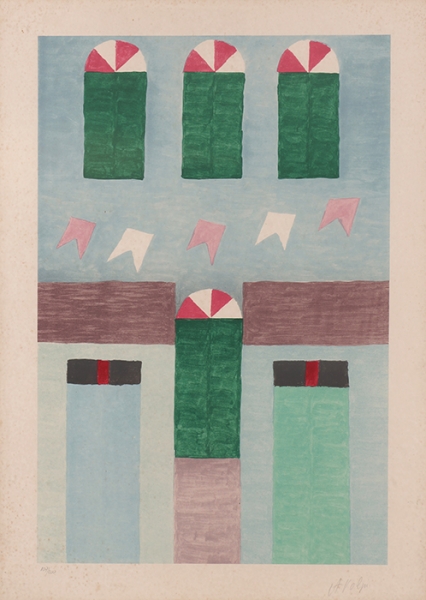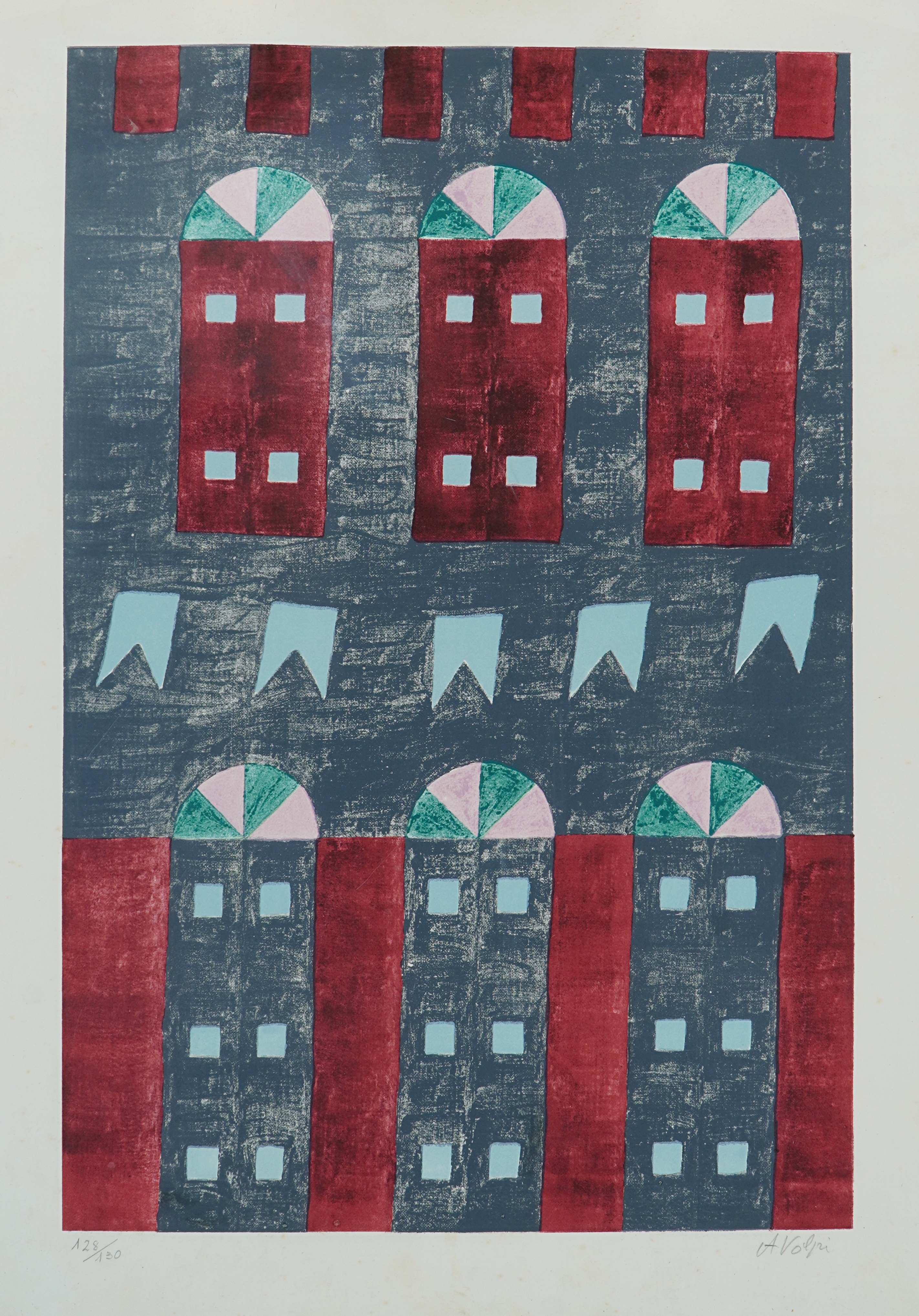ALFREDO VOLPI, Fachada com Bandeirinhas, Serigrafia, Tiragem 93/120, ACID, 73 x 49cm (m.i)