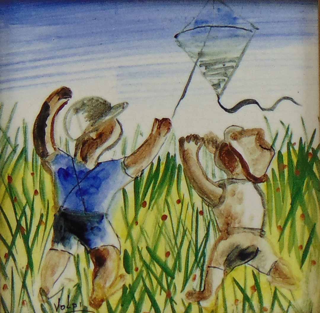 Alfredo Volpi (Lucca Itália 1896 - São Paulo SP 1988). Pintor. Muda-se com os pais para São Paulo em 1897 e, ainda criança, estuda na Escola Profissional Masculina do Brás. Mais tarde trabalha como marceneiro, entalhador e encadernador. Em 1911, torna-se pintor decorador e começa a pintar sobre madeiras e telas. Na década de 1930 passa a fazer parte do Grupo Santa Helena com vários artistas, como Mário Zanini e Francisco Rebolo, entre outros. Em 1936, participa da formação do Sindicato dos Artistas Plásticos de São Paulo e integra, em 1937, a Família Artística Paulista - FAP. Sua produção inicial é figurativa, destacando-se marinhas executadas em Itanhaém, São Paulo. No fim dos anos de 1930, mantém contato com o pintor Emídio de Souza. Em 1940, ganha o concurso promovido pelo Instituto do Patrimônio Histórico e Artístico Nacional - IPHAN, com trabalhos realizados com base nos monumentos das cidades de São Miguel e Embu e encanta-se com a arte colonial, voltando-se para temas populares e religiosos. Realiza trabalhos para a Osirarte, empresa de azulejaria criada em 1940, por Rossi Osir. Sua primeira exposição individual ocorre em São Paulo, na Galeria Itá, em 1944. Em 1950, viaja para a Europa acompanhado de Rossi Osir e Mario Zanini, quando impressiona-se com obras pré-renascentistas. Passa a executar, a partir da década de 1950, composições que gradativamente caminham para a abstração. É convidado a participar, em 1956 e 1957, dasExposições Nacionais de Arte Concreta e mantém contato com artistas e poetas do grupo concreto. Recebe, em 1953, o prêmio de Melhor Pintor Nacional da Bienal Internacional de São Paulo, dividido com Di Cavalcanti; em 1958, o Prêmio Guggenheim; em 1962 e 1966, o de melhor pintor brasileiro pela crítica de arte do Rio de Janeiro, entre outros.