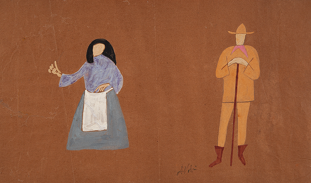 Alfredo Volpi (Lucca Itália 1896 - São Paulo SP 1988). Pintor. Muda-se com os pais para São Paulo em 1897 e, ainda criança, estuda na Escola Profissional Masculina do Brás. Mais tarde trabalha como marceneiro, entalhador e encadernador. Em 1911, torna-se pintor decorador e começa a pintar sobre madeiras e telas. Na década de 1930 passa a fazer parte do Grupo Santa Helena com vários artistas, como Mário Zanini e Francisco Rebolo, entre outros. Em 1936, participa da formação do Sindicato dos Artistas Plásticos de São Paulo e integra, em 1937, a Família Artística Paulista - FAP. Sua produção inicial é figurativa, destacando-se marinhas executadas em Itanhaém, São Paulo. No fim dos anos de 1930, mantém contato com o pintor Emídio de Souza. Em 1940, ganha o concurso promovido pelo Instituto do Patrimônio Histórico e Artístico Nacional - IPHAN, com trabalhos realizados com base nos monumentos das cidades de São Miguel e Embu e encanta-se com a arte colonial, voltando-se para temas populares e religiosos. Realiza trabalhos para a Osirarte, empresa de azulejaria criada em 1940, por Rossi Osir. Sua primeira exposição individual ocorre em São Paulo, na Galeria Itá, em 1944. Em 1950, viaja para a Europa acompanhado de Rossi Osir e Mario Zanini, quando impressiona-se com obras pré-renascentistas. Passa a executar, a partir da década de 1950, composições que gradativamente caminham para a abstração. É convidado a participar, em 1956 e 1957, dasExposições Nacionais de Arte Concreta e mantém contato com artistas e poetas do grupo concreto. Recebe, em 1953, o prêmio de Melhor Pintor Nacional da Bienal Internacional de São Paulo, dividido com Di Cavalcanti; em 1958, o Prêmio Guggenheim; em 1962 e 1966, o de melhor pintor brasileiro pela crítica de arte do Rio de Janeiro, entre outros.