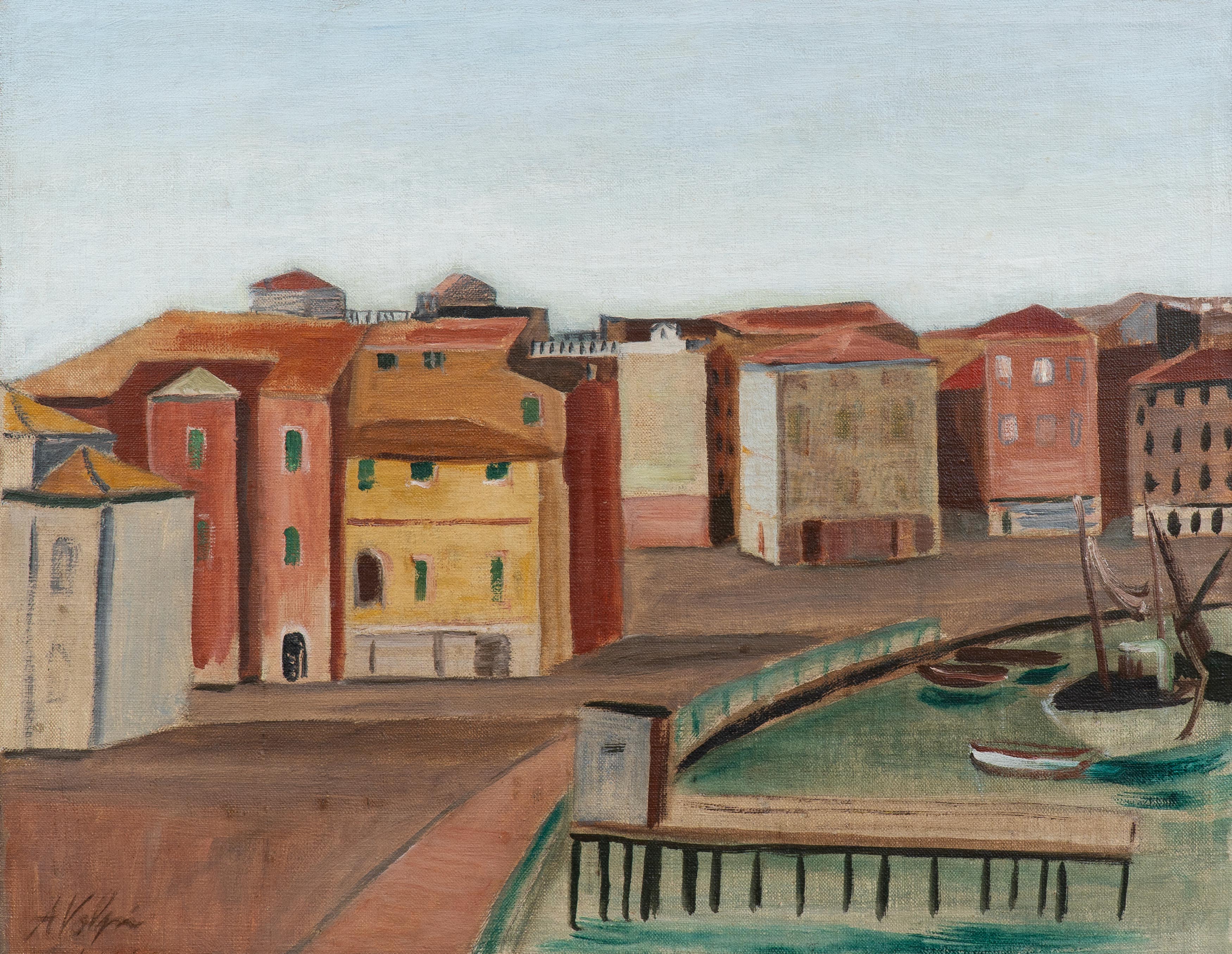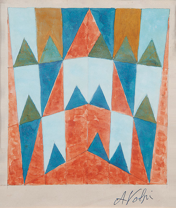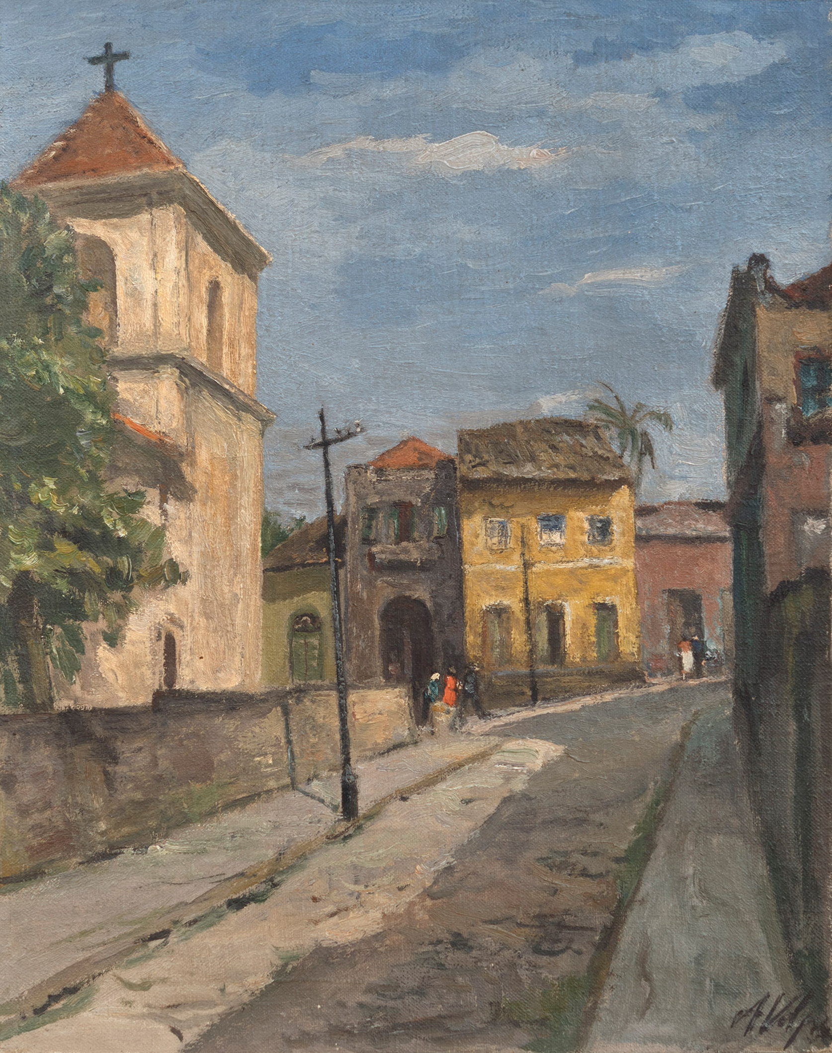 Alfredo Volpi (Lucca Itália 1896 - São Paulo SP 1988). Pintor. Muda-se com os pais para São Paulo em 1897 e, ainda criança, estuda na Escola Profissional Masculina do Brás. Mais tarde trabalha como marceneiro, entalhador e encadernador. Em 1911, torna-se pintor decorador e começa a pintar sobre madeiras e telas. Na década de 1930 passa a fazer parte do Grupo Santa Helena com vários artistas, como Mário Zanini e Francisco Rebolo, entre outros. Em 1936, participa da formação do Sindicato dos Artistas Plásticos de São Paulo e integra, em 1937, a Família Artística Paulista - FAP. Sua produção inicial é figurativa, destacando-se marinhas executadas em Itanhaém, São Paulo. No fim dos anos de 1930, mantém contato com o pintor Emídio de Souza. Em 1940, ganha o concurso promovido pelo Instituto do Patrimônio Histórico e Artístico Nacional - IPHAN, com trabalhos realizados com base nos monumentos das cidades de São Miguel e Embu e encanta-se com a arte colonial, voltando-se para temas populares e religiosos. Realiza trabalhos para a Osirarte, empresa de azulejaria criada em 1940, por Rossi Osir. Sua primeira exposição individual ocorre em São Paulo, na Galeria Itá, em 1944. Em 1950, viaja para a Europa acompanhado de Rossi Osir e Mario Zanini, quando impressiona-se com obras pré-renascentistas. Passa a executar, a partir da década de 1950, composições que gradativamente caminham para a abstração. É convidado a participar, em 1956 e 1957, dasExposições Nacionais de Arte Concreta e mantém contato com artistas e poetas do grupo concreto. Recebe, em 1953, o prêmio de Melhor Pintor Nacional da Bienal Internacional de São Paulo, dividido com Di Cavalcanti; em 1958, o Prêmio Guggenheim; em 1962 e 1966, o de melhor pintor brasileiro pela crítica de arte do Rio de Janeiro, entre outros.