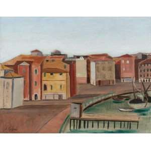 Alfredo Volpi - Barcos do cáis, da série Viagem à Itália - déc. 1950 - Óleo sobre tela - Assinado canto inferior esquerdo - 50 x 65 cm. Registrada pelo Instituto Alfredo Volpi sob o tombo ACOAV 1008, reproduzida no Catálogos de Obras Alfredo Volpi 2015, edição comemorativa do centenário da 1a pintura, pág. 173. Participou da exposição "Alfredo Volpi: retrospectiva”, Museu de Arte Moderna (MAM), São Paulo, 1975.