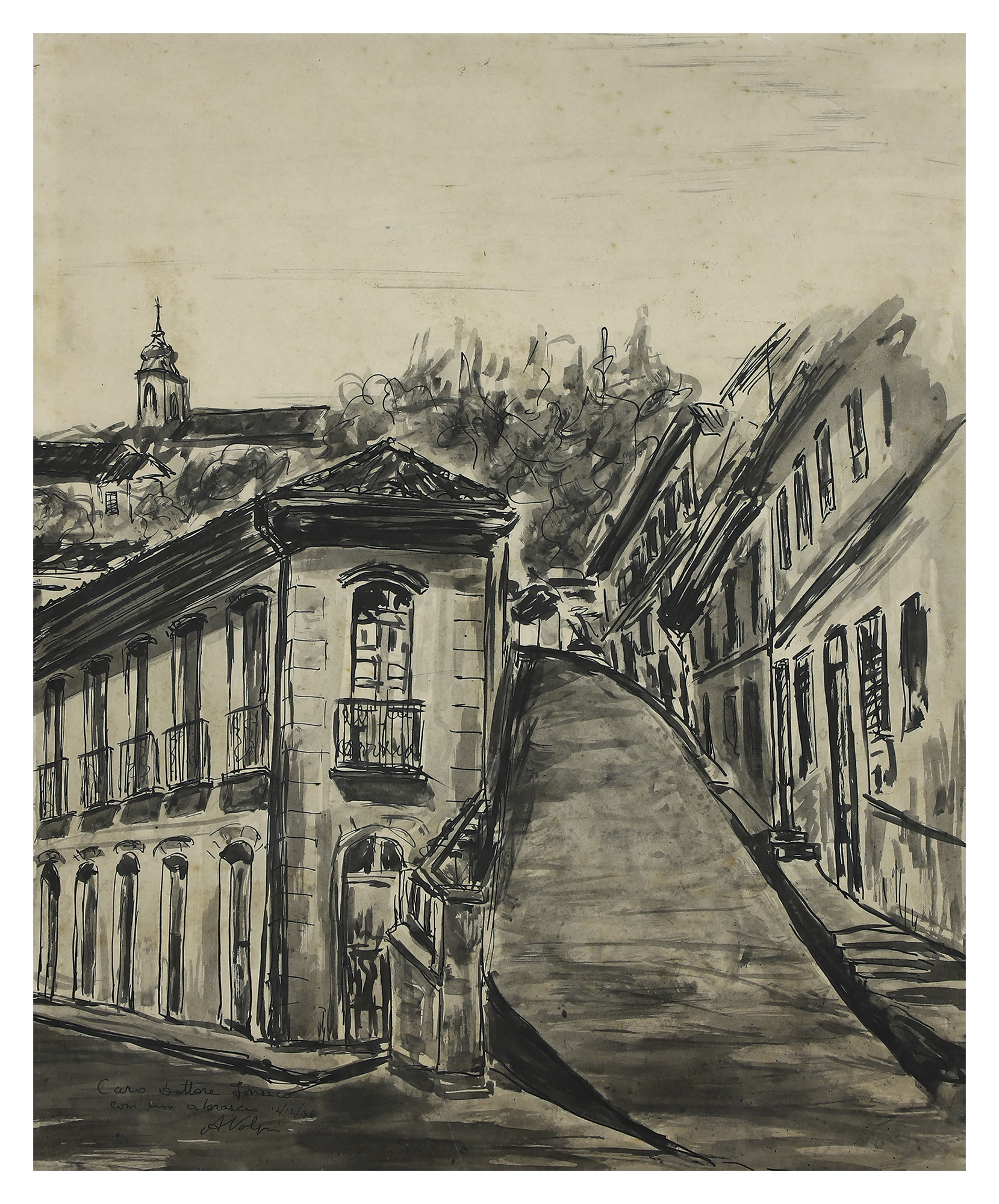 Alfredo Volpi (Lucca Itália 1896 - São Paulo SP 1988). Pintor. Muda-se com os pais para São Paulo em 1897 e, ainda criança, estuda na Escola Profissional Masculina do Brás. Mais tarde trabalha como marceneiro, entalhador e encadernador. Em 1911, torna-se pintor decorador e começa a pintar sobre madeiras e telas. Na década de 1930 passa a fazer parte do Grupo Santa Helena com vários artistas, como Mário Zanini e Francisco Rebolo, entre outros. Em 1936, participa da formação do Sindicato dos Artistas Plásticos de São Paulo e integra, em 1937, a Família Artística Paulista - FAP. Sua produção inicial é figurativa, destacando-se marinhas executadas em Itanhaém, São Paulo. No fim dos anos de 1930, mantém contato com o pintor Emídio de Souza. Em 1940, ganha o concurso promovido pelo Instituto do Patrimônio Histórico e Artístico Nacional - IPHAN, com trabalhos realizados com base nos monumentos das cidades de São Miguel e Embu e encanta-se com a arte colonial, voltando-se para temas populares e religiosos. Realiza trabalhos para a Osirarte, empresa de azulejaria criada em 1940, por Rossi Osir. Sua primeira exposição individual ocorre em São Paulo, na Galeria Itá, em 1944. Em 1950, viaja para a Europa acompanhado de Rossi Osir e Mario Zanini, quando impressiona-se com obras pré-renascentistas. Passa a executar, a partir da década de 1950, composições que gradativamente caminham para a abstração. É convidado a participar, em 1956 e 1957, dasExposições Nacionais de Arte Concreta e mantém contato com artistas e poetas do grupo concreto. Recebe, em 1953, o prêmio de Melhor Pintor Nacional da Bienal Internacional de São Paulo, dividido com Di Cavalcanti; em 1958, o Prêmio Guggenheim; em 1962 e 1966, o de melhor pintor brasileiro pela crítica de arte do Rio de Janeiro, entre outros.