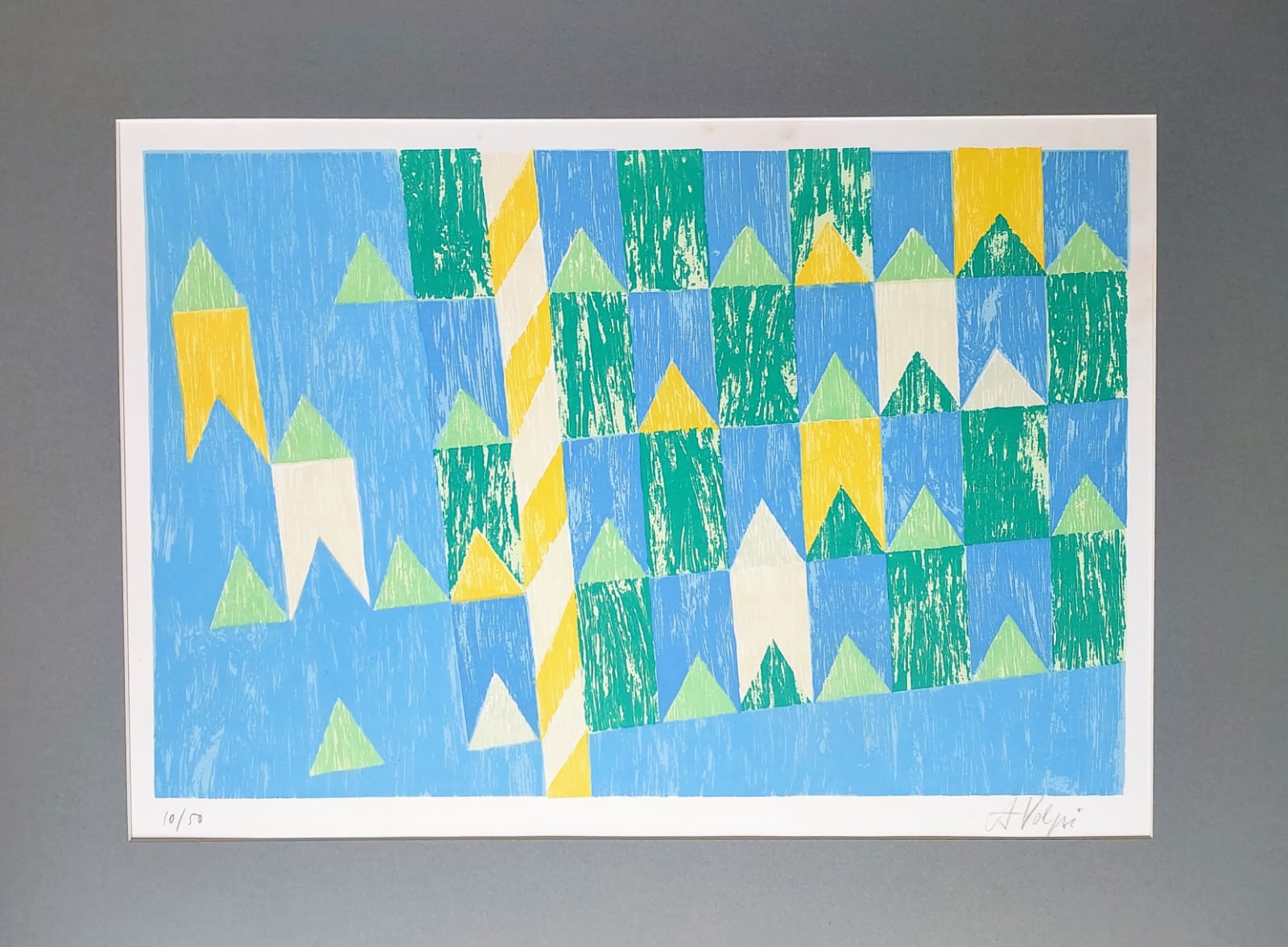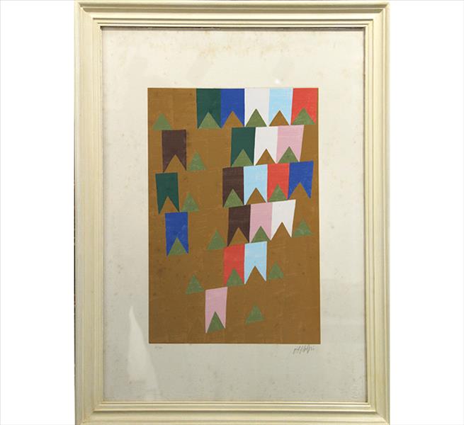 Alfredo Volpi gravura 64 x 46 cm "Sem titulo " ass. CID t. 70/100. Apresenta fungos