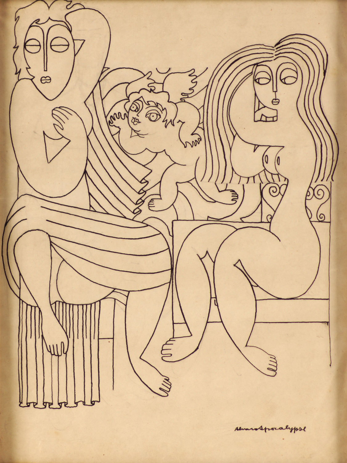 Álvaro Brandão Apocalypse (Ouro Fino, MG, 1937 - Belo Horizonte, MG, 2003). Pintor, ilustrador, designer de bonecos, diretor teatral, cenógrafo, gravador, museólogo e professor. Em 1956, estuda litografia e gravura em metal na Escola Guignard e inicia curso de direito na Universidade Federal de Minas Gerais (UFMG). Realiza desenhos e atua como ilustrador em várias publicações. Em 1959, leciona na recém-criada Escola de Belas Artes da Faculdade de Arquitetura da UFMG, da qual se torna professor titular em 1981. Em 1962, torna-se professor da Fundação Mineira de Arte e começa a trabalhar em publicidade como layout-man.