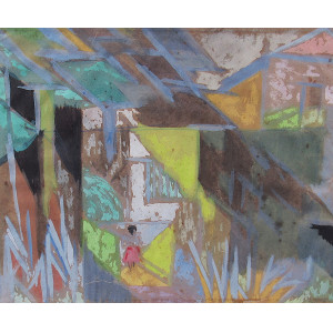 André Lhote guache e técnica misturada em papel pardo 22 x 27cm intitulada " O Jardim de Suzanne vers 1950" ass. CID. Com certificado assinado pela representante do artista em Paris.