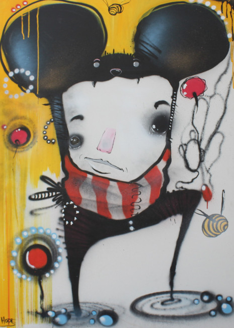Seus personagens estão sempre acompanhados de abelhas trazendo como mensagem a sua representatividade: a coletividade, a união e a força.