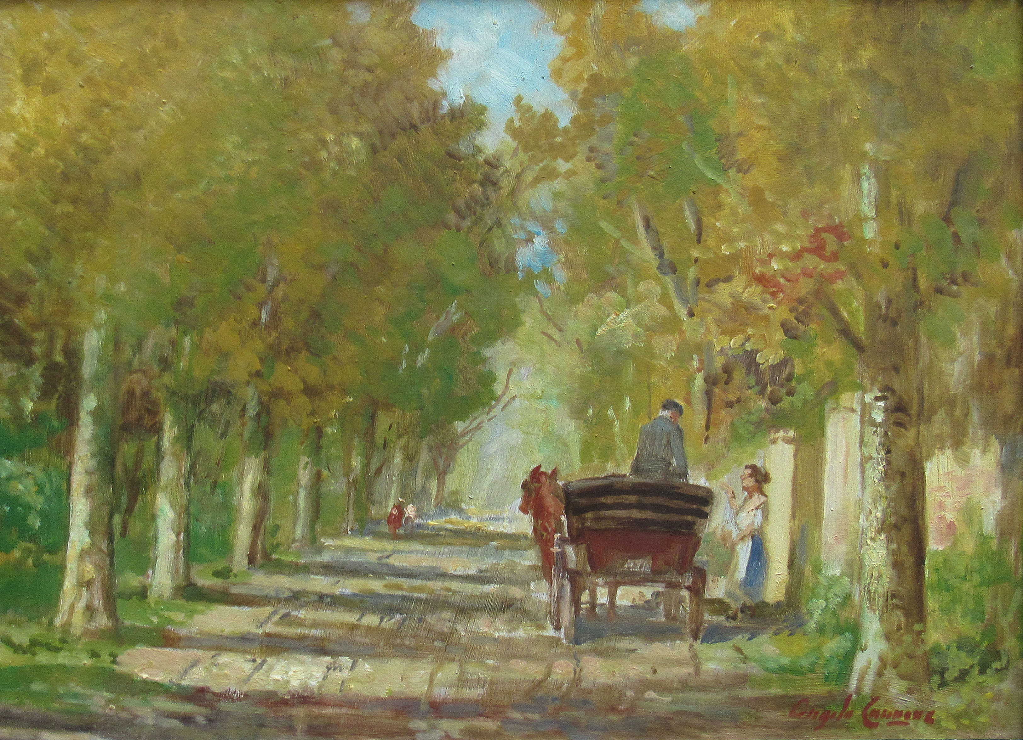 Ângelo Cannone óleo sobre Eucatex 30 x 40cm intitulada"La Carrozza a Posta" Ass. CID