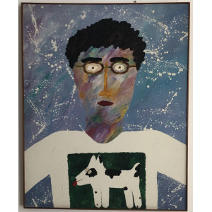 Ângelo de Aquino, Auto Retrato com Neve. Liquitex sobre tela, 1986, titulado e situado Paris no verso. Med. 100 x 80 cm.