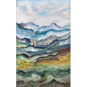 ANTONIO AUGUSTO NETO - paisagem mineira assinada Aneto - CID - OSE - Dat. 1990 - 34 x 22 cm. (Aluno de Guignard)