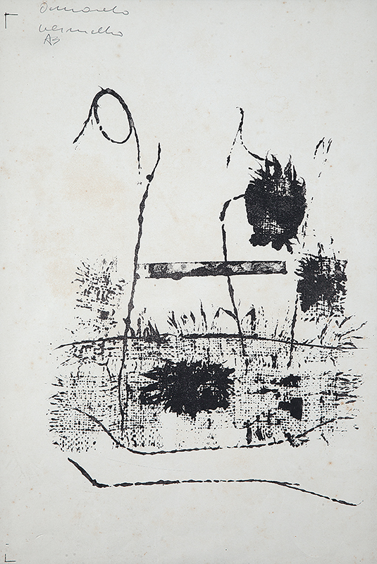 ANTÔNIO BANDEIRA - Sem título- Técnica Mista Sobre Papel ( Nanquim, óleo e guache sobre papel ) - 20 x 43 cm.Com carimbo de venda do atelier do artista no verso 1969 e com inscrição de autenticidade assinado por Roberto Teixeira Leite 22 de Maio 1969.