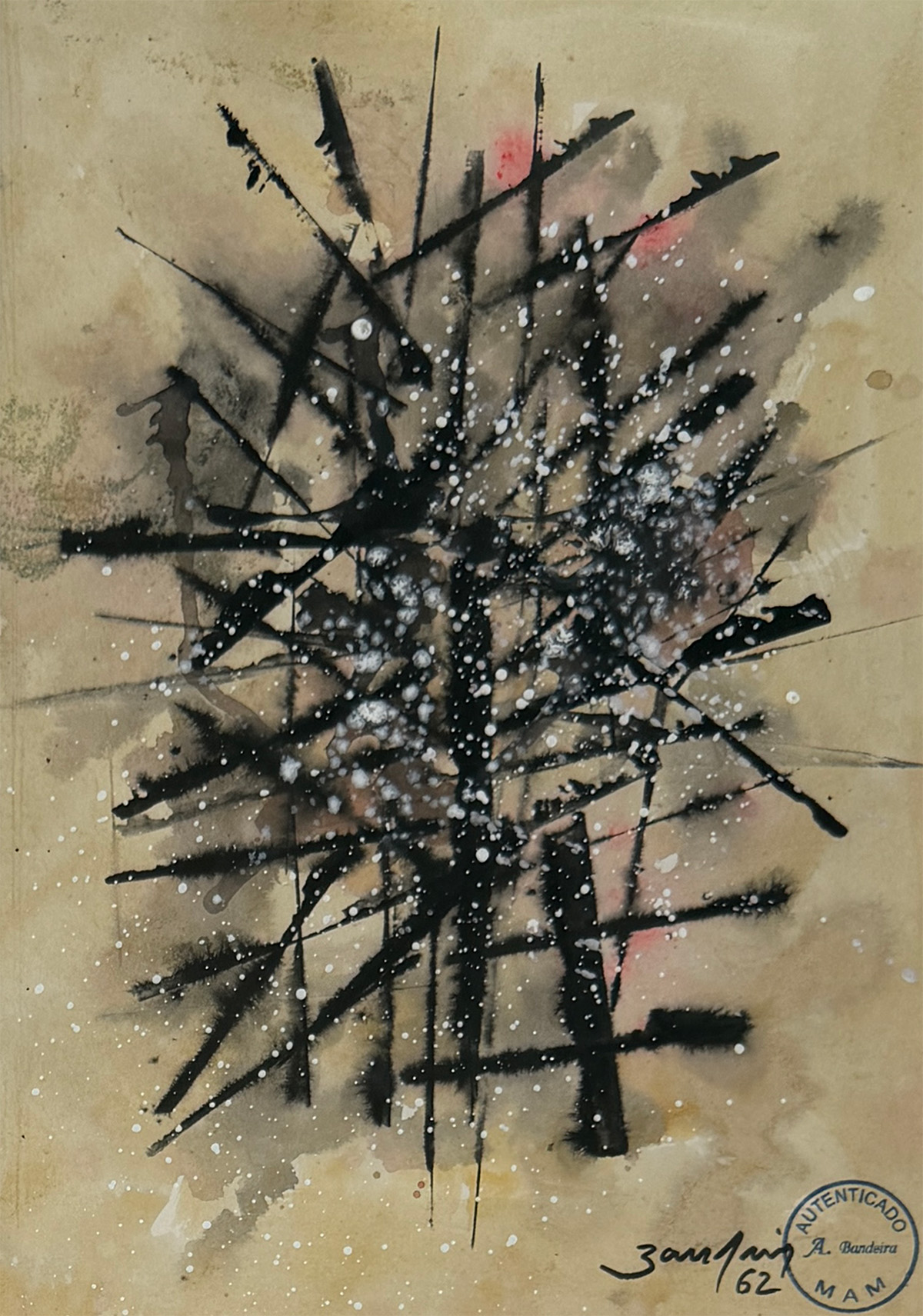 Antonio Bandeira (1922 - 1967) - Sem título - nanquim e guache - 28,5 x 38,5 cm - assinada canto inferior direito - 1966 - Participação: Exposição Antonio Bandeira / Bernard Quentin, Abril 1987 - Paulo Figueiredo Galeria de Arte SP. Maio 1987 - Galeria Bonino RJ.