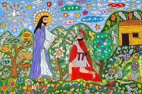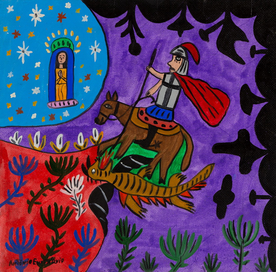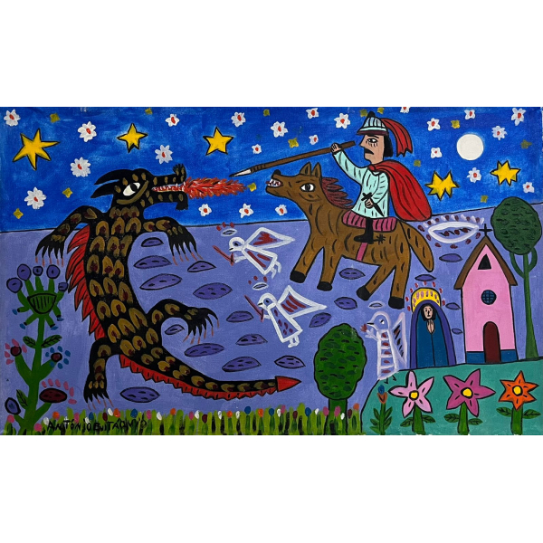 Antônio Eustáquio - São Jorge e o Dragão - 32,5 x 53 cm - Óleo sobre tela - Assinatura canto inferior esquerdo e Data 2025