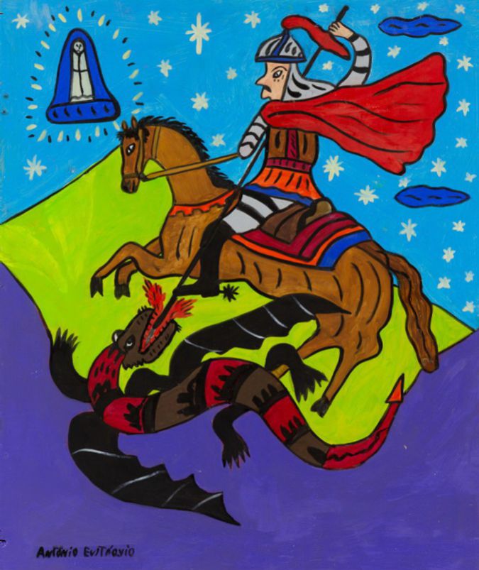 Antônio Eustáquio - São Jorge e o Dragão - 32,5 x 53 cm - Óleo sobre tela - Assinatura canto inferior esquerdo e Data 2025