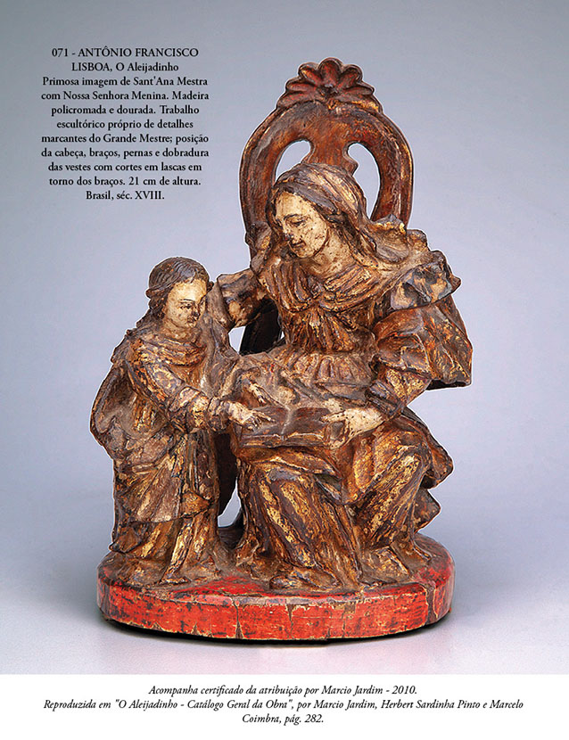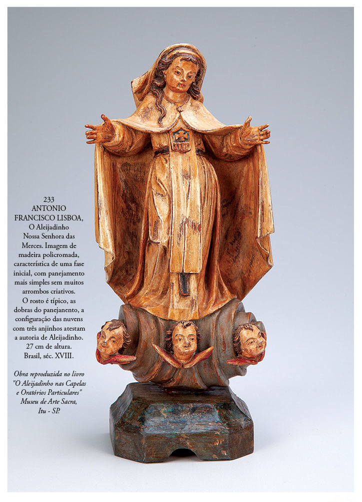 • - 1800-05. Esculpiu, também em Congonhas do Campo, as estátuas em pedra-sabão dos 12 Profetas, consideradas as suas obras-primas: concentrou as imagens numa área estratégica – nas muretas das escadarias e no parapeito do adro. A impressão geral que ficou do conjunto é a de uma coreografia solene, na qual os gestos e atitudes de cada personagem encontram correspondência nos demais. Essas apocalípticas esculturas são consideradas as últimas expressões autênticas da arte cristã ocidental.