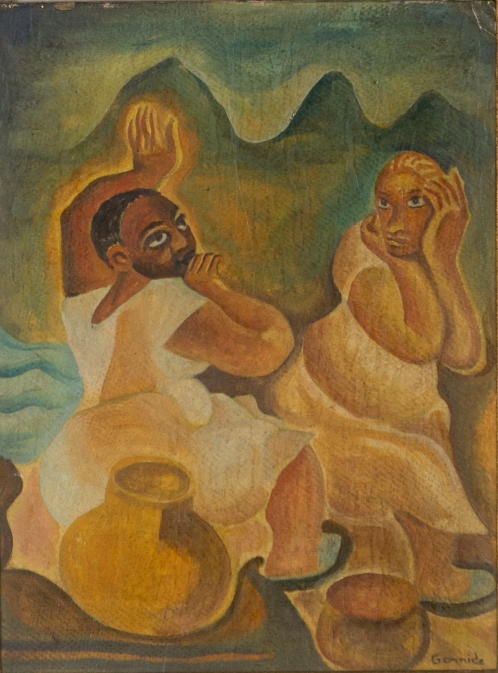 Antônio Gomide - Mulheres dançando - c. 1958 - Óleo sobre tela - Assinado canto inferior direito - 50 x 61 cm. Etiqueta Ricardo Camargo Galeria no verso. Reproduzido no livro "Gomide", pág. 193.