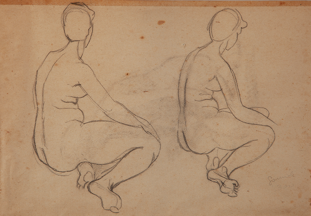 Antonio Gomide - Estudo com papagaios - déc. 1930 - Carvão sobre papel - Assinado canto inferior direito - 35 x 21 cm.