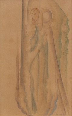 Antonio Gomide - Cena idílica com casal - déc. 1920 - Aquarela sobre papel - Assinado canto inferior direito - 30 x 15 cm.