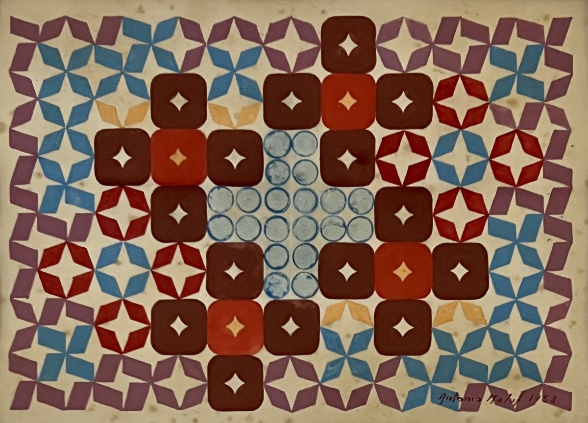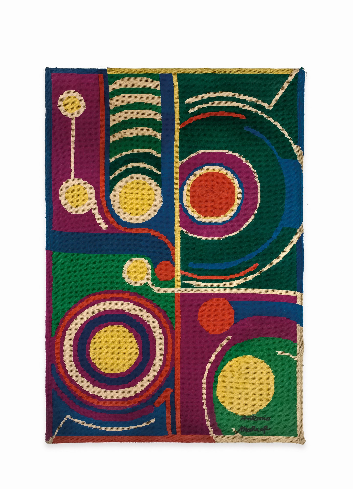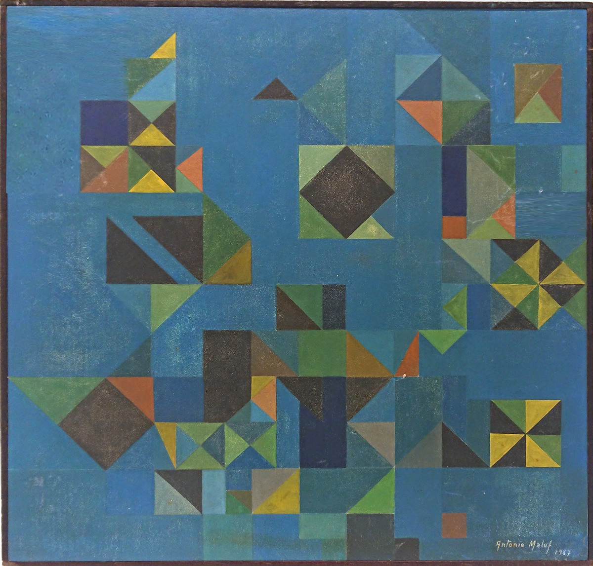 Antônio Maluf (São Paulo SP 1926 - idem 2005). Pintor, desenhista e artista gráfico. Inicia seus estudos em engenharia civil e passa, posteriormente, a cursar a Escola Livre de Artes Plásticas, em São Paulo, dirigida por Flávio Motta (1916). Realiza também cursos de pintura com Waldemar da Costa (1904 - 1982) e Flexor (1907 - 1971). Estuda gravura no Museu de Arte de São Paulo Assis Chateaubriand - Masp, com Poty (1924 - 1998) e Darel (1924). Freqüenta o primeiro curso de desenho industrial da América Latina, no Instituto de Arte Contemporânea - IAC do Masp, onde é aluno de Sambonet (1924 - 1995), entre outros. Nessa época, entra em contato com a arte construtiva, por meio da obra de Max Bill (1908 - 1994), apresentada na 1ª Bienal Internacional de São Paulo, em 1951, e no Masp, em 1952. A tendência construtiva caracteriza sua atividade como artista, designer gráfico e programador visual. Vence o concurso para o cartaz da 1ª Bienal Internacional de São Paulo, em 1951, e este é considerado um marco do design gráfico no país. O artista utiliza vários suportes e realiza pinturas murais e elementos modulares, atuando em colaboração com arquitetos como Vilanova Artigas (1915 - 1985), entre outros.