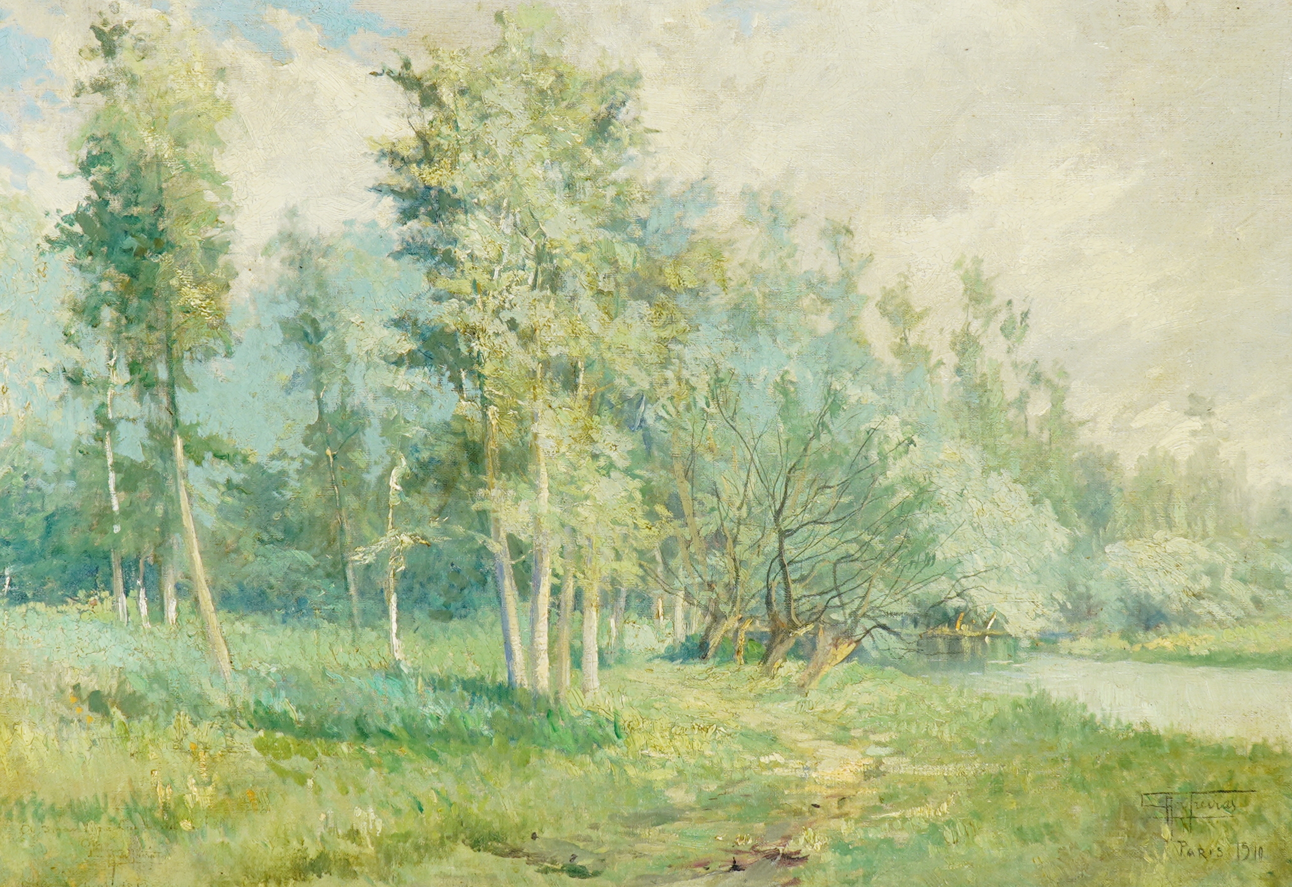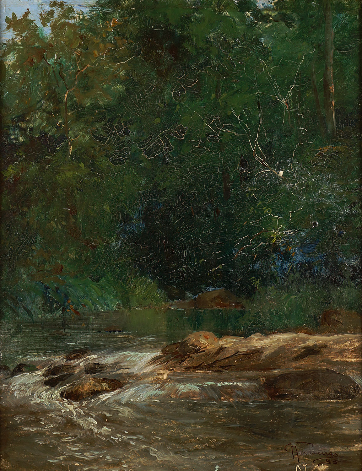 Grande paisagista e pintor de história, dedicou-se também à pintura de gênero. Filho de um ourives, e sétimo uma prole de nove, pai de Dakir Parreiras e tio de Edgard Parreiras, ambos pintores, descendia de uma família que veio para o Brasil com a corte de D. João VI. Inicia estudos artísticos como aluno livre na Academia Imperial de Belas Artes - Aiba, no Rio de Janeiro, em 1883, onde permanece até meados de 1884. Neste período freqüenta as aulas de paisagem, flores e animais, disciplina ministrada por Georg Grimm (1846 - 1887). Por discordar do ensino oferecido, desliga-se da Aiba e segue seu antigo professor, passando a integrar o Grupo Grimm ao lado de Castagneto (1851 - 1900), Caron (1862 - 1892), Garcia y Vasquez (ca.1859 - 1912), entre outros, dedicando-se à pintura ao ar livre. Em 1888, viaja para a Itália e durante dois anos freqüenta a Accademia di Belle Arti di Venezia [Academia de Belas Artes de Veneza], tornando-se discípulo de Filippo Carcano (1840 - 1910). De volta ao Brasil, em 1890, dá aulas de paisagem na Aiba, mas após dois meses de seu ingresso, desliga-se da instituição por discordar da reforma curricular promovida em novembro daquele ano. No ano seguinte, funda a Escola do Ar Livre, em Niterói, Rio de Janeiro. De 1906 a 1919 viaja freqüentemente a Paris, onde mantém ateliê. Recebe, em 1911, o título de delegado da Sociéte Nationale des Beaux Arts, raramente concedido a estrangeiros. Em 1926, lança seu livro autobiográfico História de um Pintor Contada por Ele Mesmo, com o qual ingressa na Academia Fluminense de Letras. Funda o Salão Fluminense de Belas Artes, em Niterói, em 1929. Em 1941, sua casa-ateliê, na mesma cidade, é transformada no Museu Antônio Parreiras, com o objetivo de preservar e divulgar sua obra.