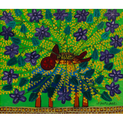 1972 – Já conhecido como ceramista, foi incentivado pelos artistas plásticos Siron Franco e Cleber Gouvęa a dedicar-se ŕ pintura, bem como a colorir as peças que esculpia.