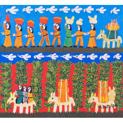 Antônio Poteiro - A Parteira - Escultura em barro cozido - 39 alt x 23 larg x 29 prof (cm) - ass. na peça - Acompanha certificado emitido pelo instituto Antônio Poteiro.