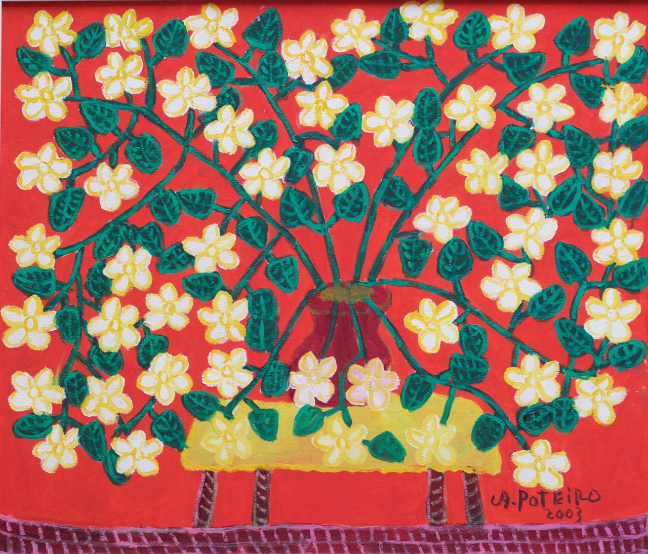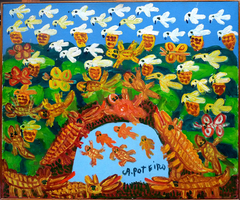 Antônio Poteiro - Sem título, 2007 - Óleo sobre tela, assinado inferior direito; assinado e datado no verso. - Acompanha certificado de autenticidade do Instituto Antônio Poteiro. - 90 x 100 cm.
