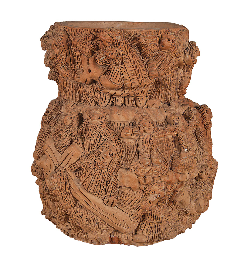 Antônio Poteiro - Sem título - Escultura em cerâmica - Assinada - 180 x 78 x 54 cm. Participou da exposição "Terra", galeria Claraboia, curadoria Moacir dos Anjos e Priscyla Gomes, 2025. Reproduzida no catálogo na mostra, pp. 08, 17, 21, 73 e 137.