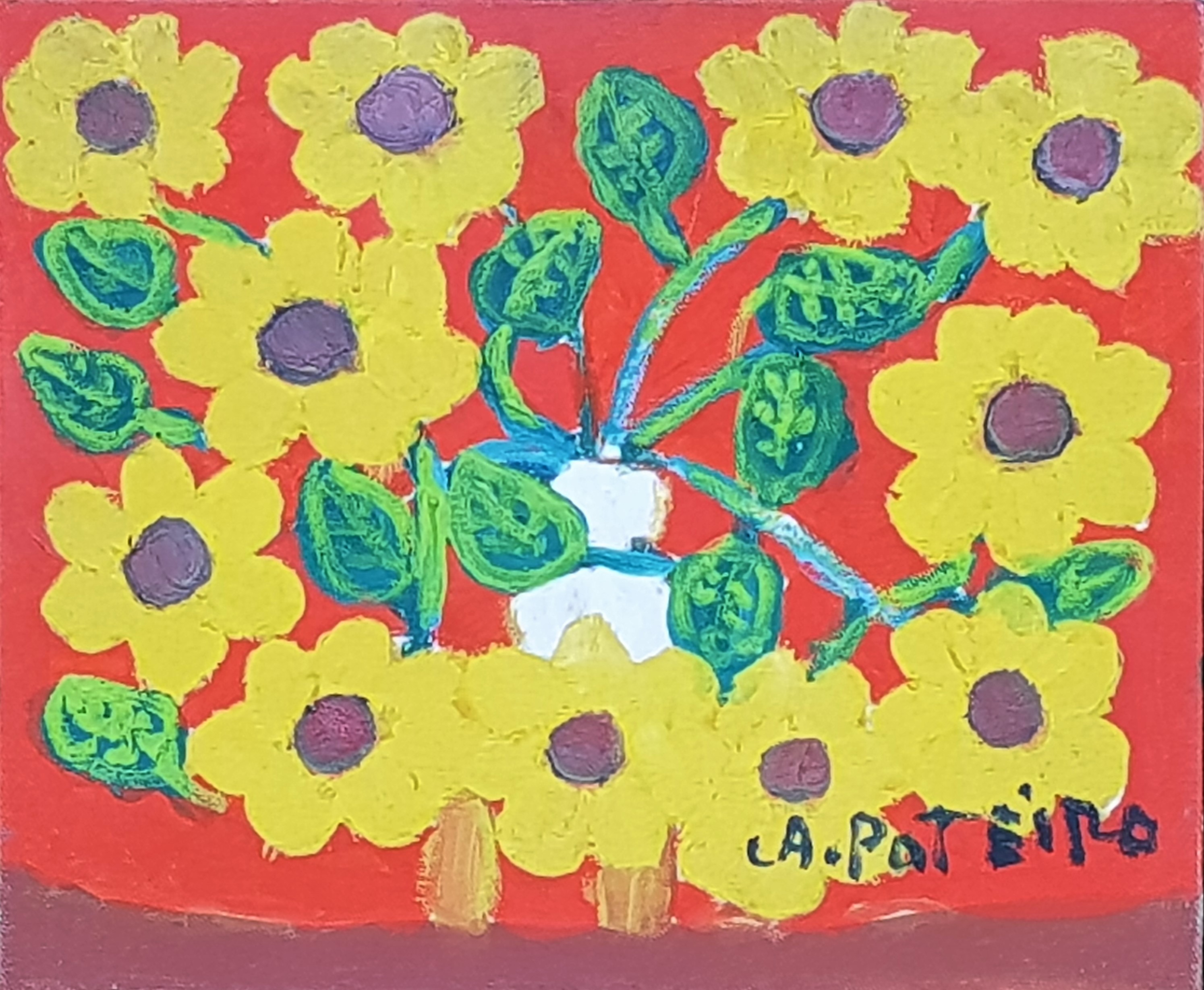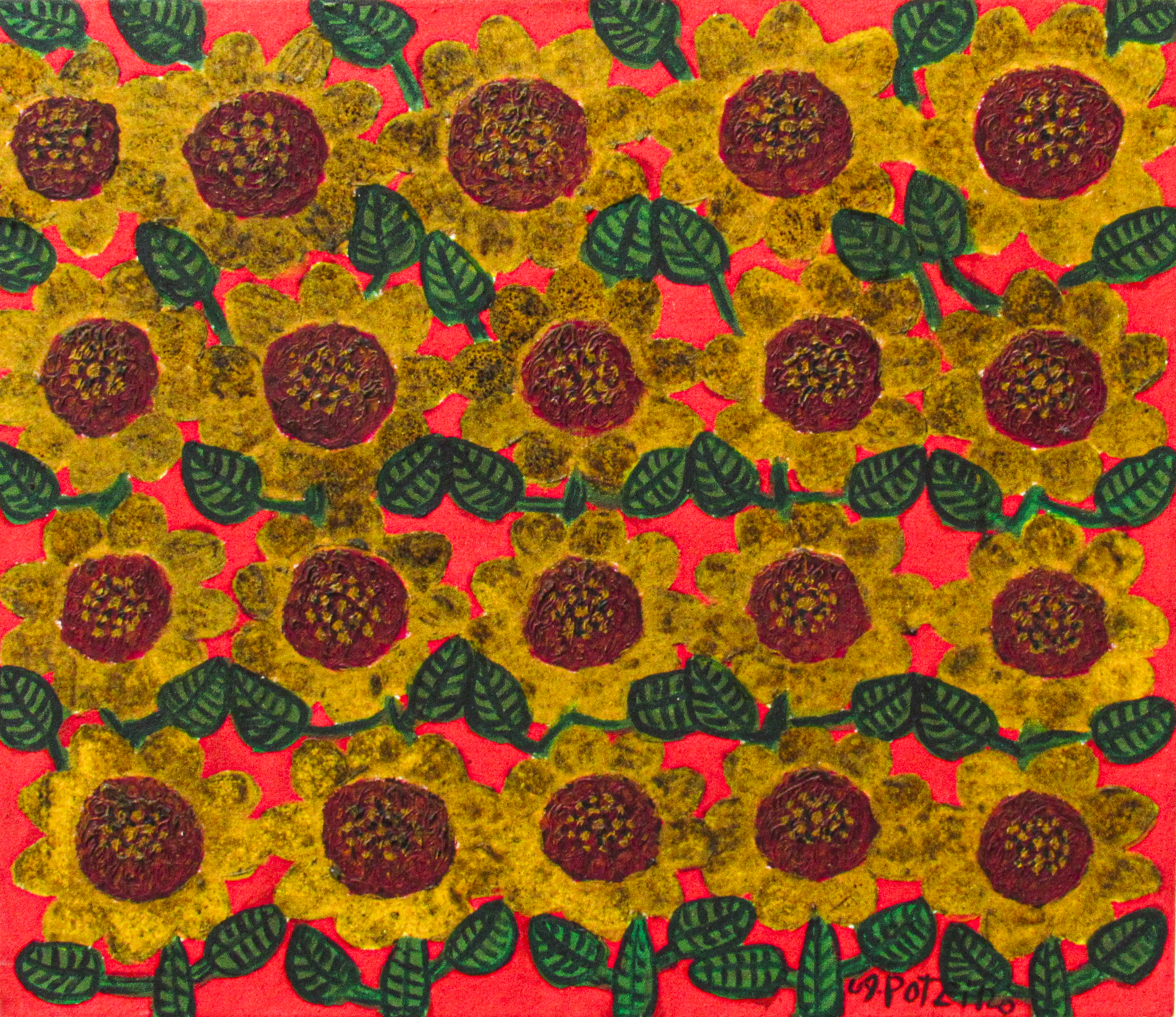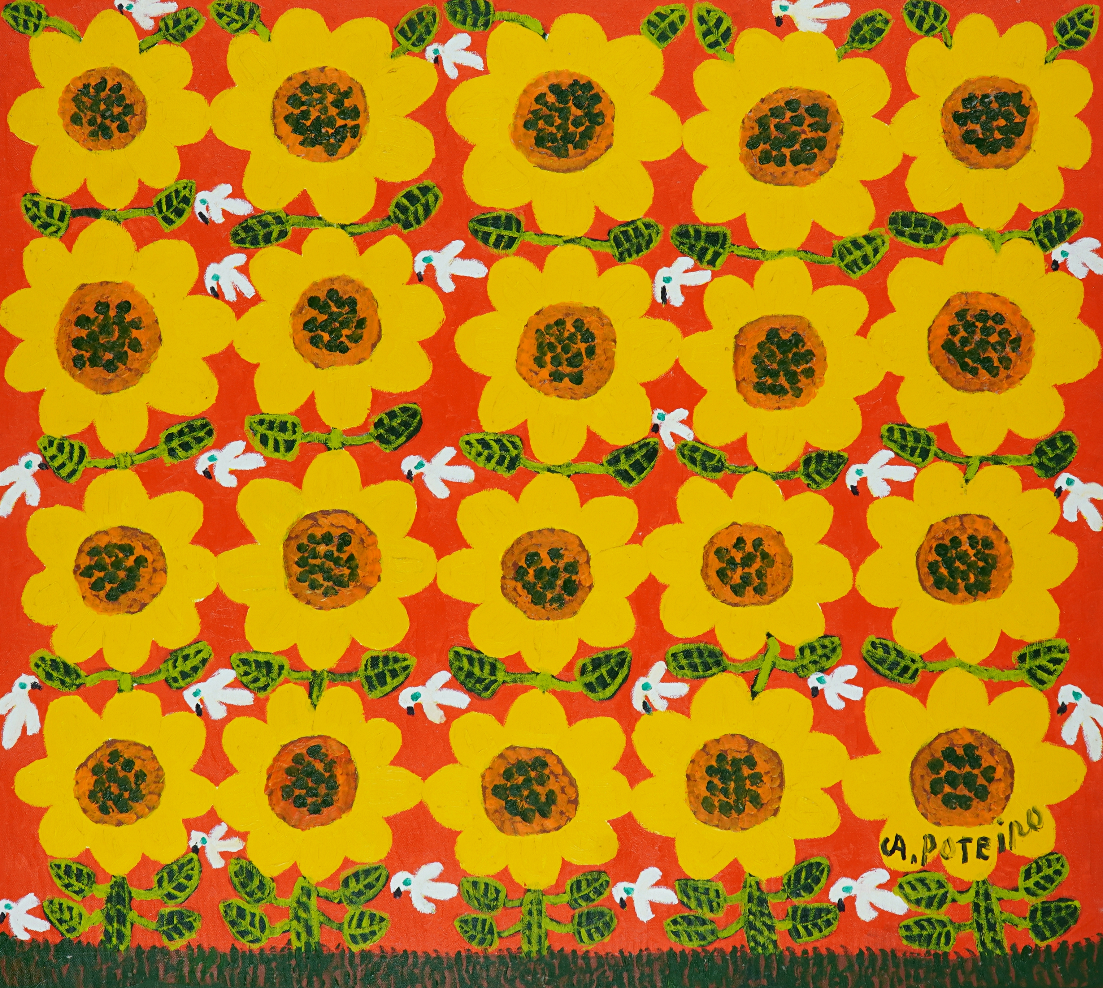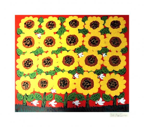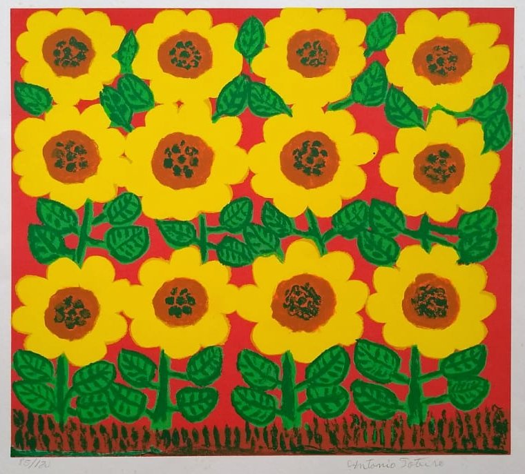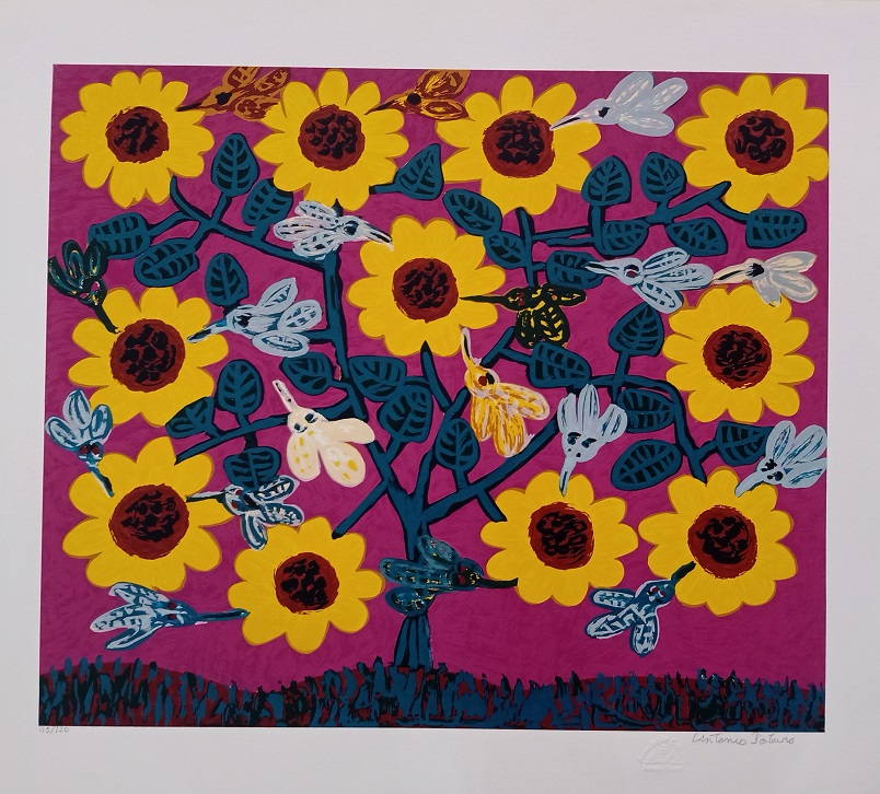 Antônio Poteiro - Girassol - 1997 - Óleo sobre tela - Assinado canto inferior direito - 180 x 170 cm. Reproduzido no catálogo “O universo mágico de Antônio Poteiro”, exposição realizada na Legião da Boa Vontade, Brasília, 1997, pág. 7.