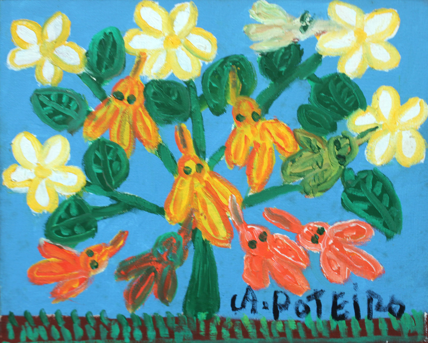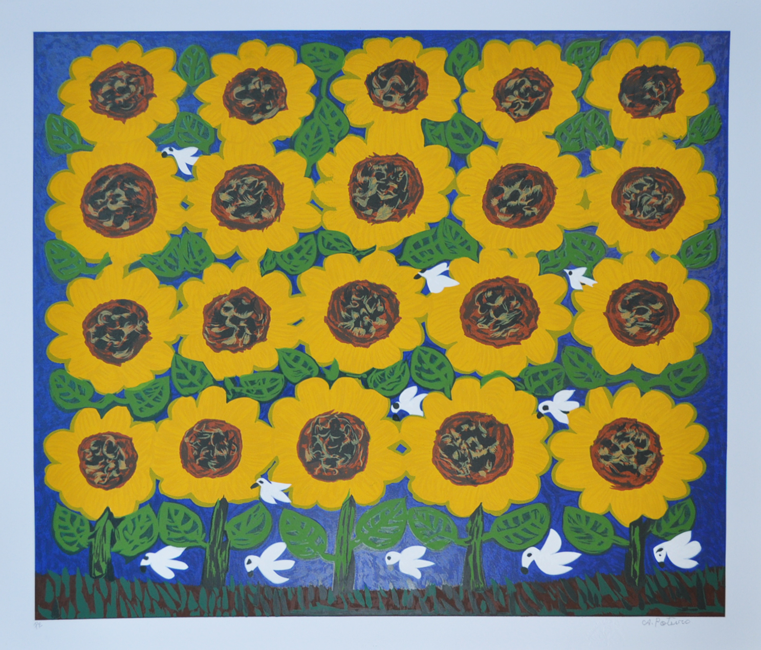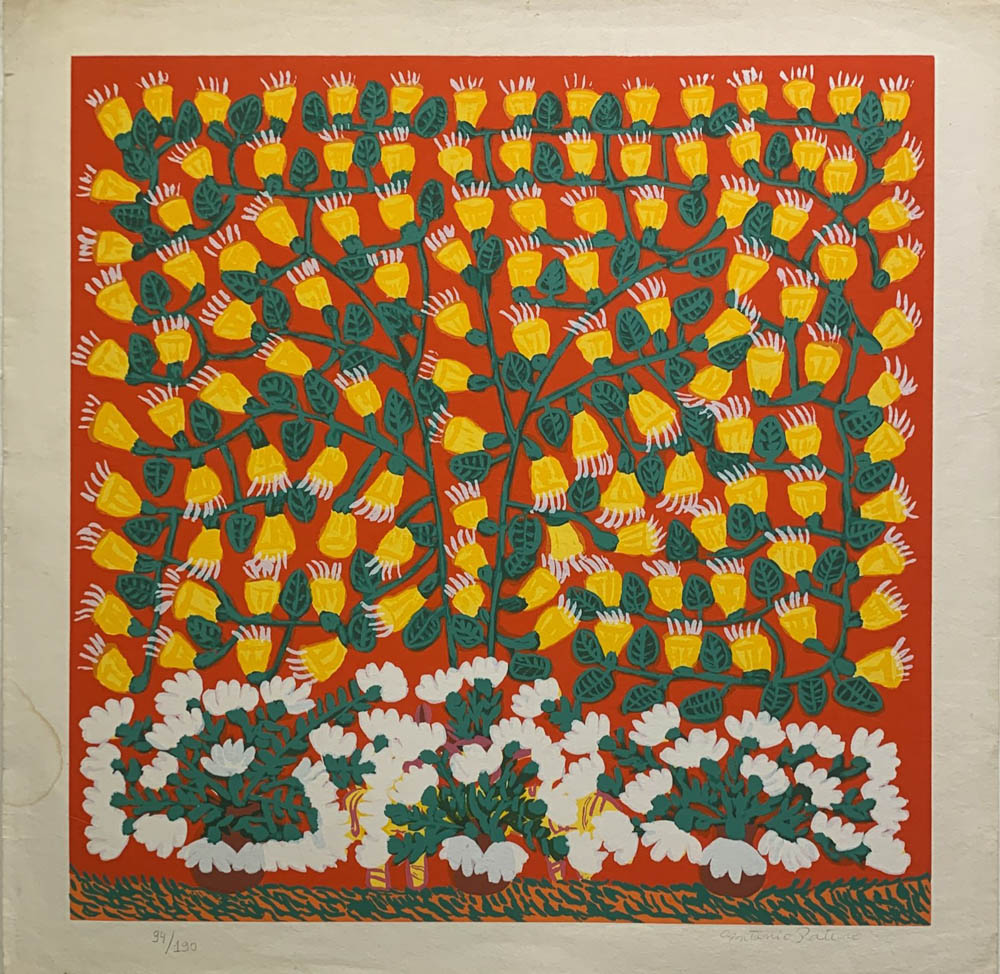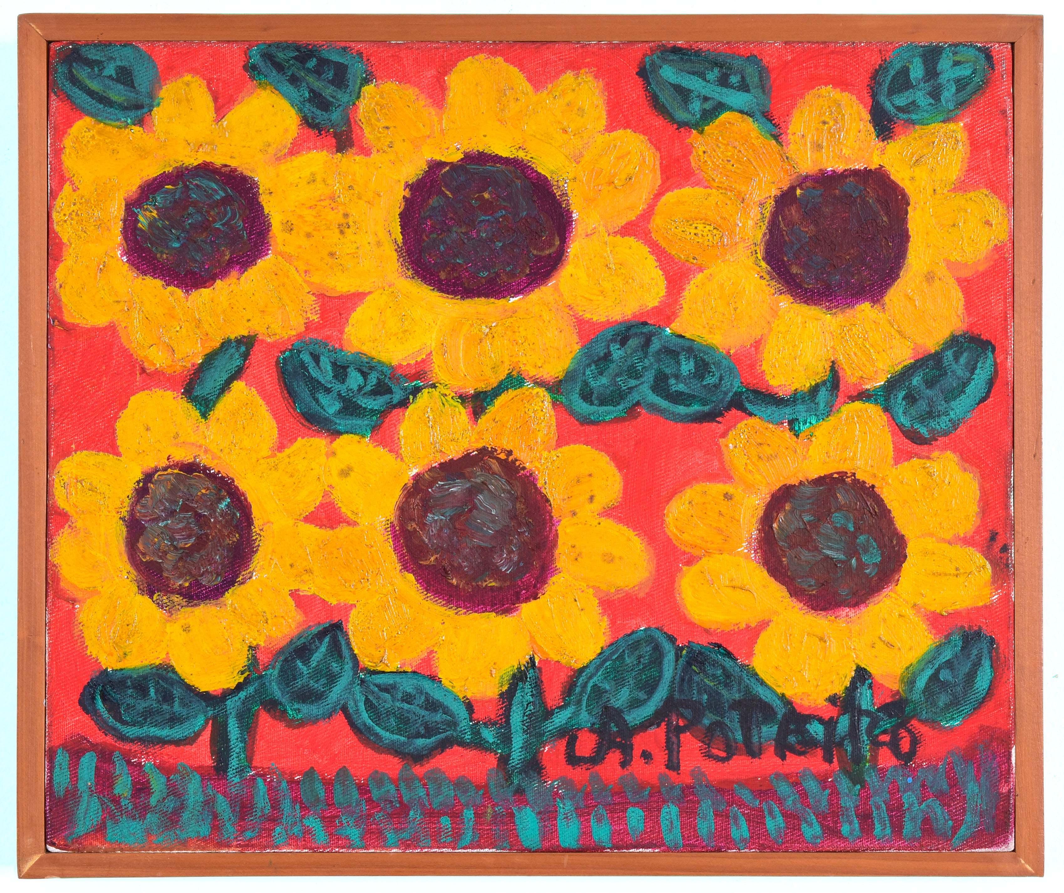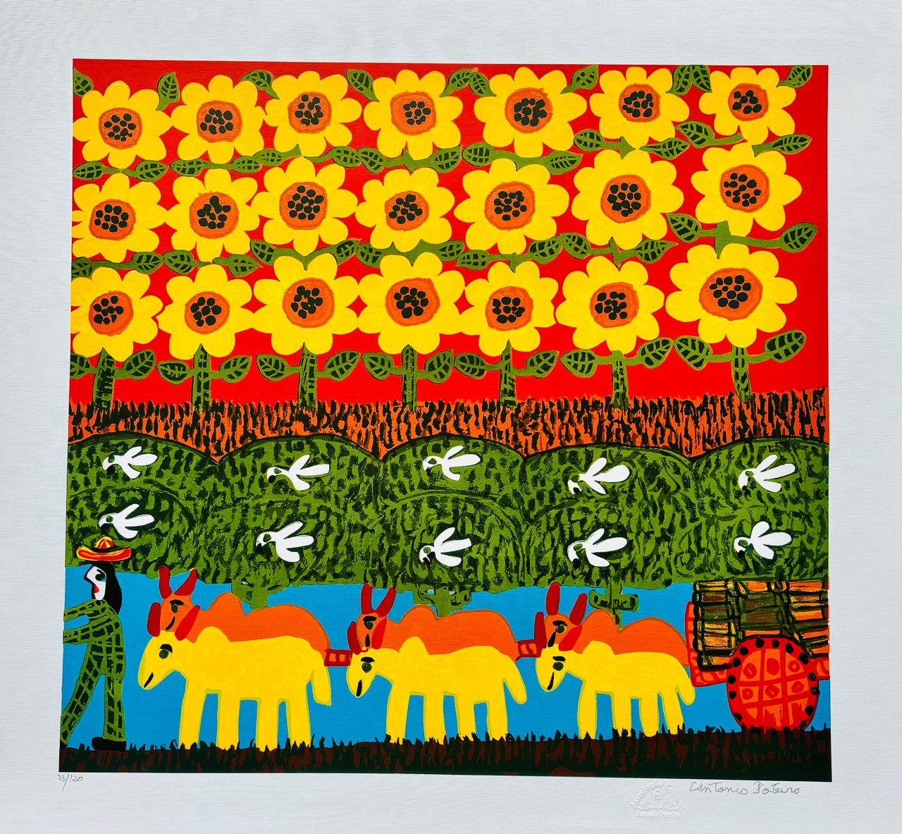 Antônio Poteiro - Girassol - 1997 - Óleo sobre tela - Assinado canto inferior direito - 180 x 170 cm. Reproduzido no catálogo “O universo mágico de Antônio Poteiro”, exposição realizada na Legião da Boa Vontade, Brasília, 1997, pág. 7.