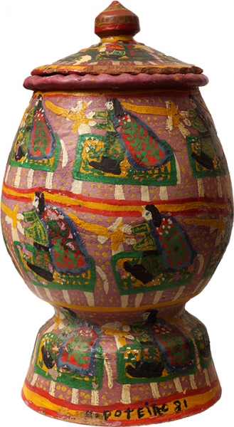 ANTONIO POTEIRO (1925–2010) – Escultura em cerâmica. Pintor e ceramista português radicado no Brasil, considerado um dos principais nomes da arte naïf brasileira, com produção marcada por cenas populares, profusão de personagens e forte caráter narrativo, amplamente presente em coleções públicas e privadas. Dimensões: alt. 46 cm.