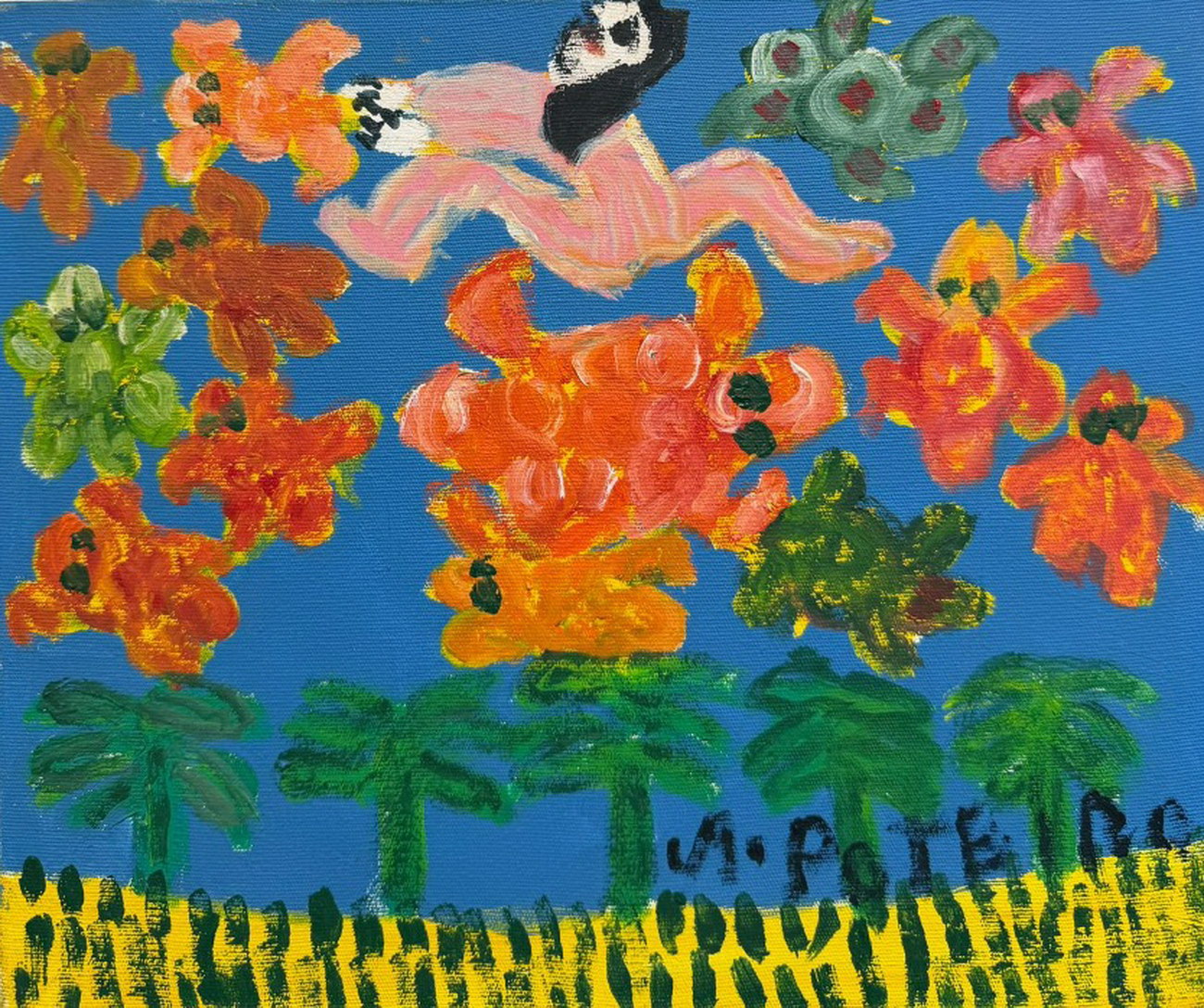 Antônio Poteiro - Ciranda com Anjos e Flores – 90 x 100 cm – Óleo Sobre Tela – Ass. Canto Inferior Direito e Dat. 2000 – Série Especial 81 Anos.