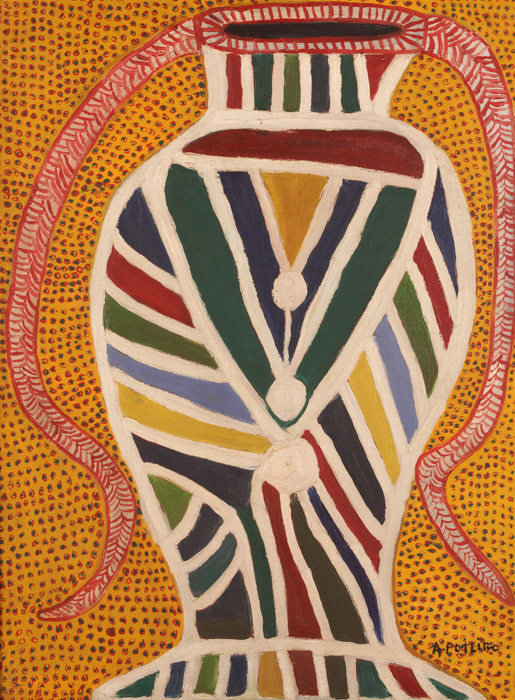 1972 – Já conhecido como ceramista, foi incentivado pelos artistas plásticos Siron Franco e Cleber Gouvęa a dedicar-se ŕ pintura, bem como a colorir as peças que esculpia.
