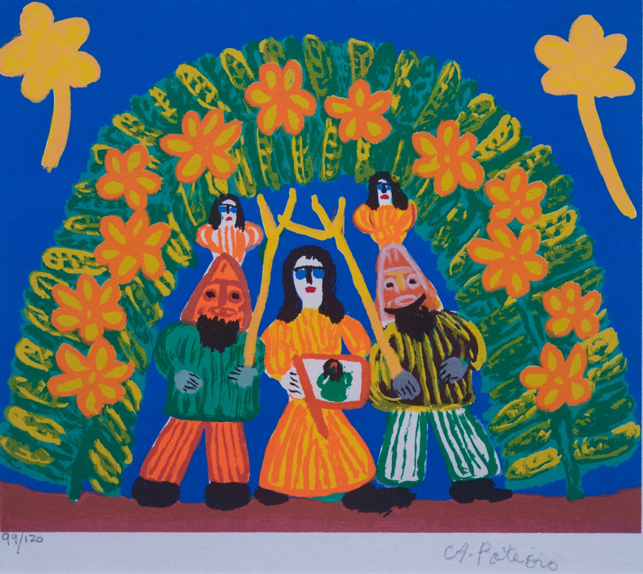 Antônio Poteiro - Casamento no céu - 45 x 50 cm - Óleo sobre tela - Assinatura canto inferior direito e verso