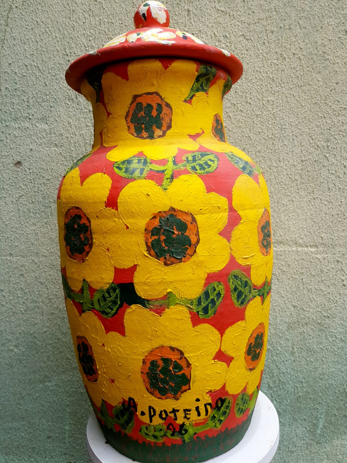 1972 – Já conhecido como ceramista, foi incentivado pelos artistas plásticos Siron Franco e Cleber Gouvęa a dedicar-se ŕ pintura, bem como a colorir as peças que esculpia.