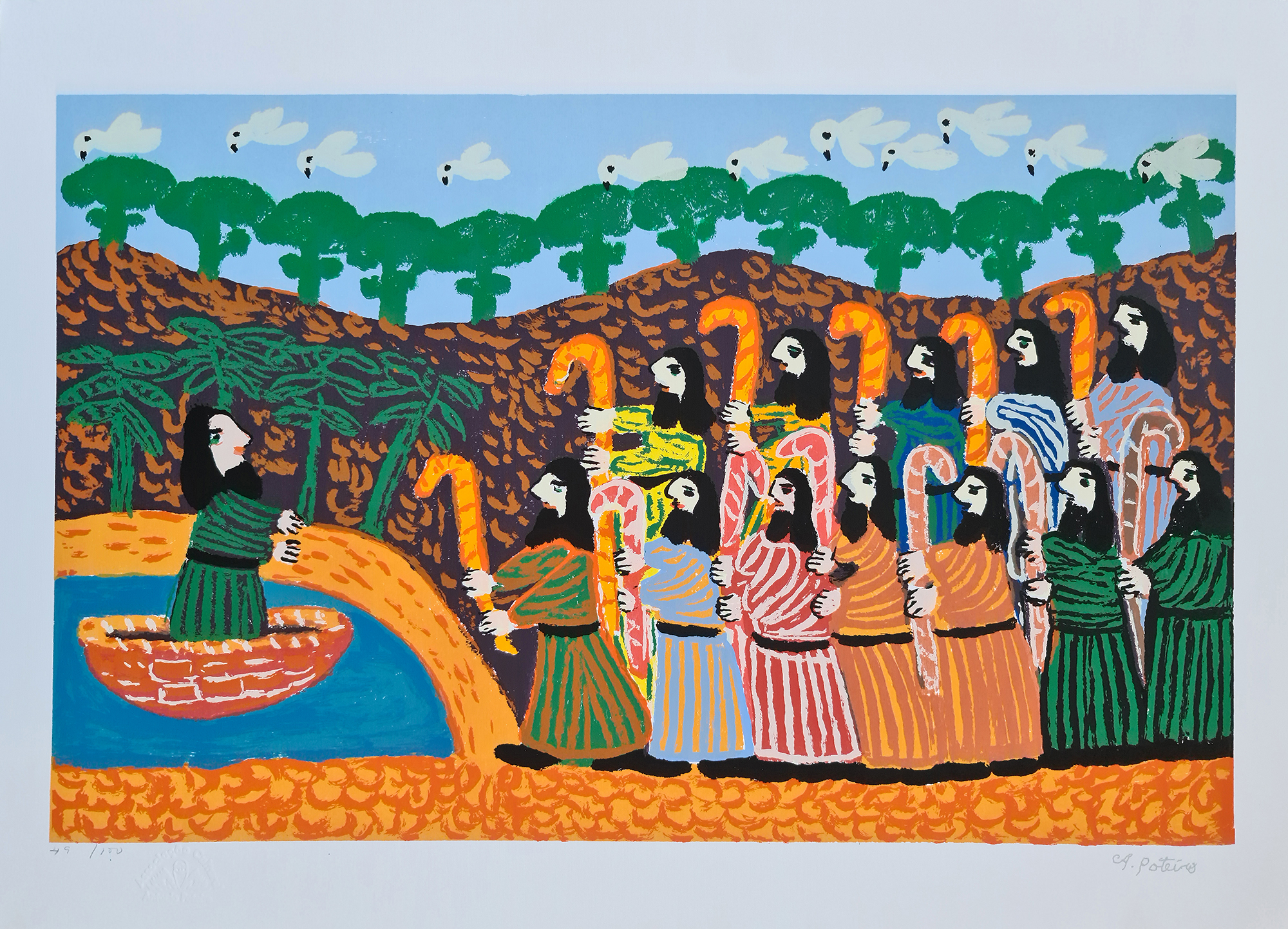 POTEIRO - Serigrafia | Título: Girassóis com Carro de Boi | Assinada: CID | edição: 103 /120 | Medidas: 70 x 70 cm