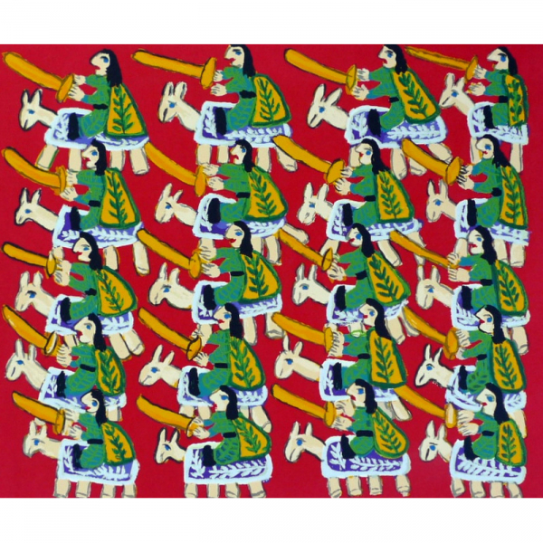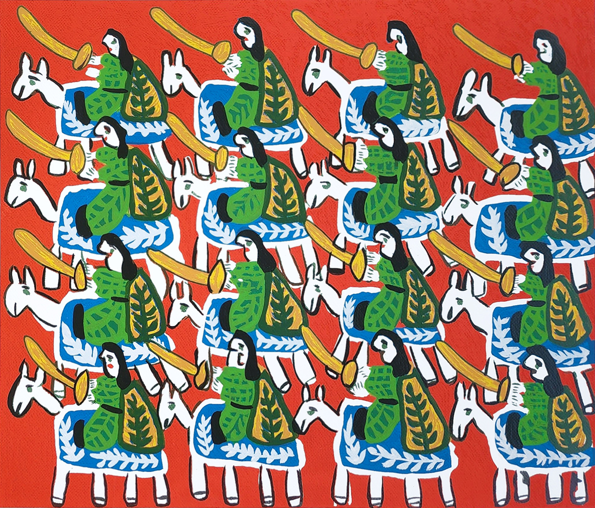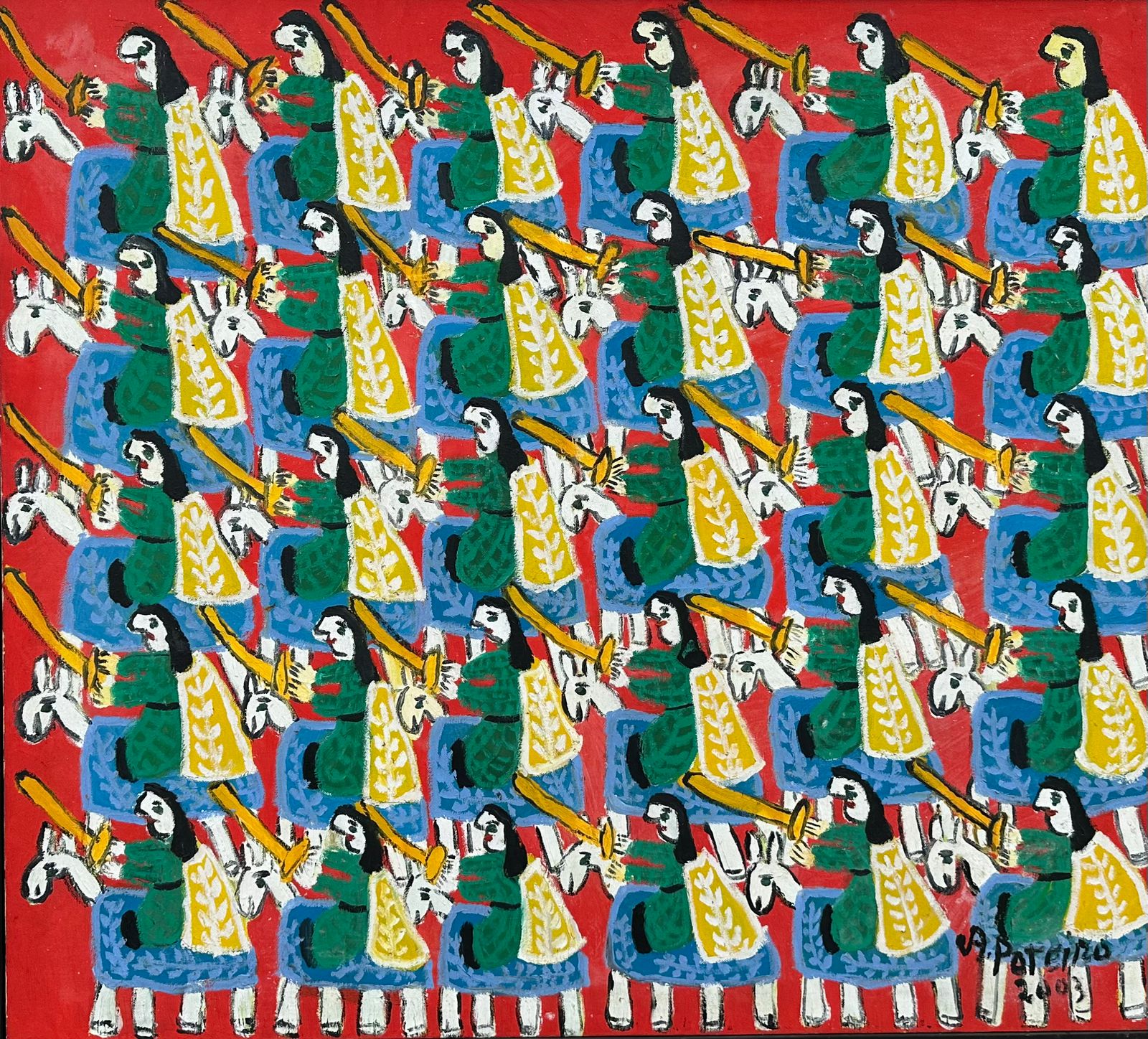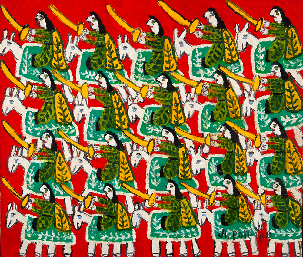Antônio Poteiro - Cavalhada - 90 x 100 cm - Óleo sobre tela - Assinatura canto inferior direito e Data 2009 - Série especial 83 anos do artista