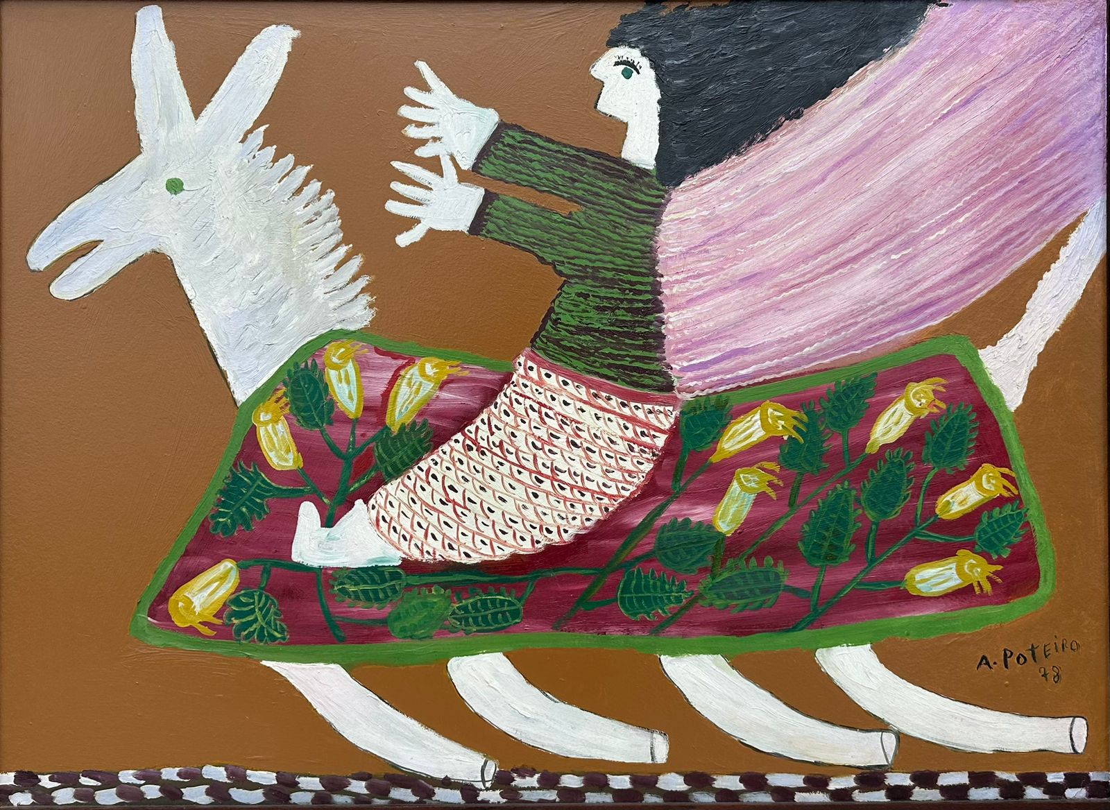 1972 – Já conhecido como ceramista, foi incentivado pelos artistas plásticos Siron Franco e Cleber Gouvęa a dedicar-se ŕ pintura, bem como a colorir as peças que esculpia.