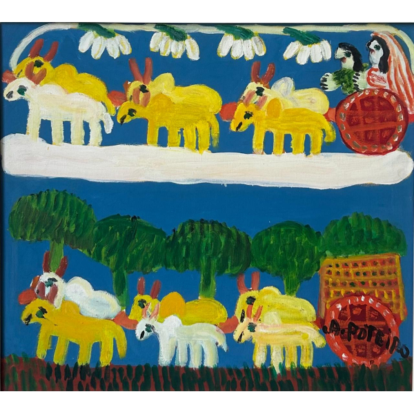 Antônio Poteiro - Casamento no céu - 45 x 50 cm - Óleo sobre tela - Assinatura canto inferior direito e verso