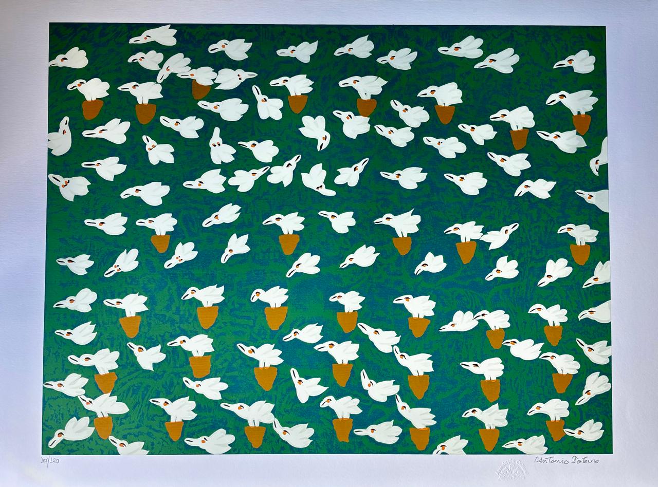 ANTONIO POTEIRO, Revoada verde - serigrafia - 70x100 cm - Póstuma - Ass. Impressa