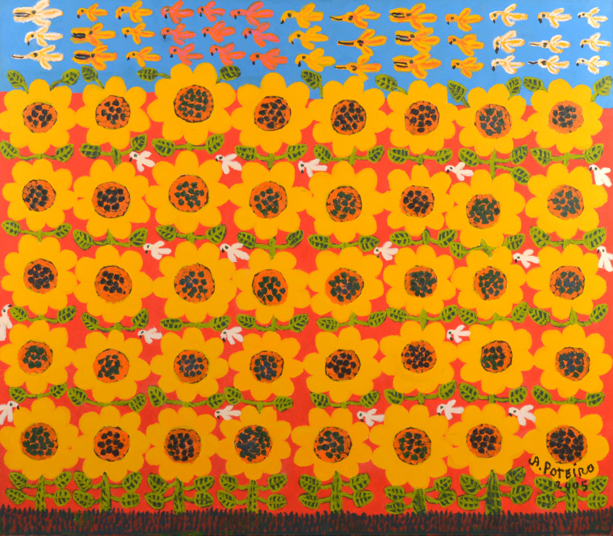 1996 – Realizou-se a exposiçăo Retrospectiva 33 Anos: Cerâmica e Pintura, sobre sua obra, promovida pela Fundaçăo Jaime Câmara na Galeria Casa Grande, em Goiânia. Frequentemente classificada como naďf, suas telas e cerâmicas apresentam-se intimamente ligadas ao cotidiano das populaçőes do centro-oeste brasileiro, destacando-se a temática religiosa e a representaçăo dos costumes e da paisagem regional, na qual se nota forte harmonizaçăo entre formas e cores. Seu trabalho foi focalizado nos vídeos-documentários Antônio Poteiro: o profeta do barro e das cores (1983), dirigido por Antônio Eustáquio, e Antonio Poteiro (1991), de Ronaldo Duque. Foi homenageado com as comendas Oficialato da Ordem do Mérito (1987), oferecida pelo governo portuguęs, e Ordem do Mérito Cultural (1997), concedida pelo Ministério da Cultura brasileiro; e ainda com a medalha Gustavo Ritter (1999), do Conselho Estadual de Cultura de Goiás.