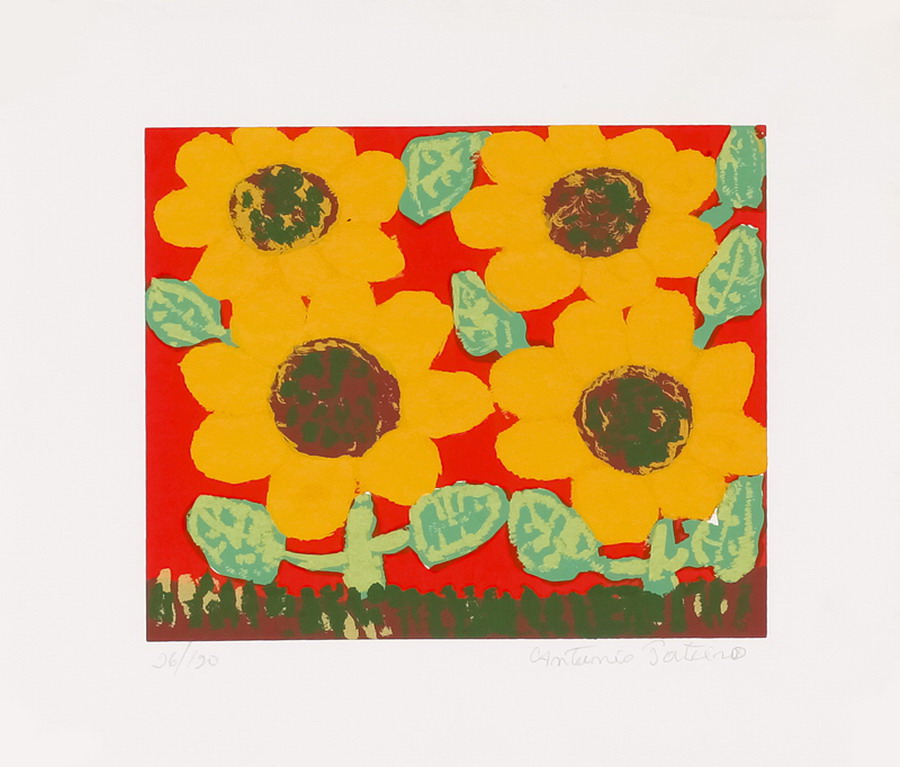ANTONIO POTEIRO, Girassóis fundo preto - serigrafia - 36x48 cm - Póstuma - 90/100