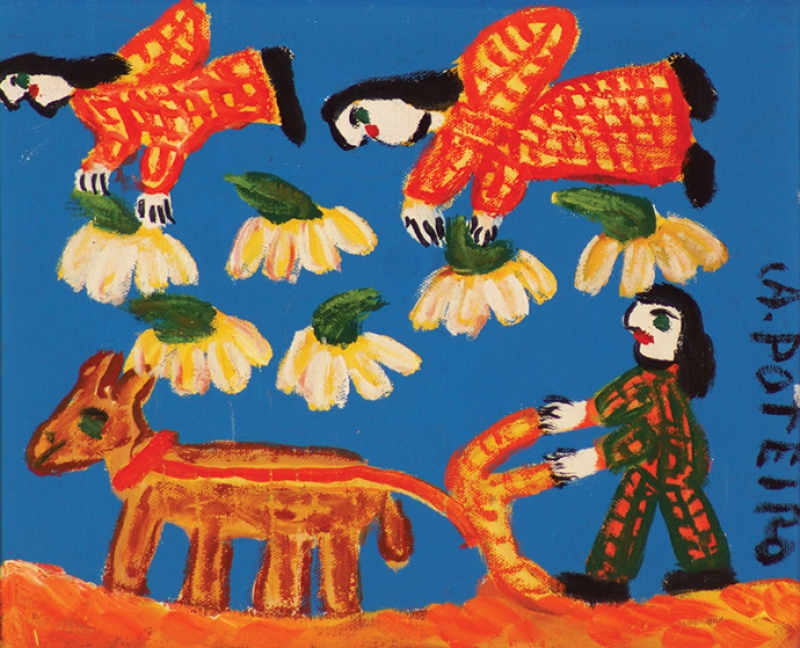 Antônio Poteiro - Casamento no céu - 45 x 50 cm - Óleo sobre tela - Assinatura canto inferior direito e verso