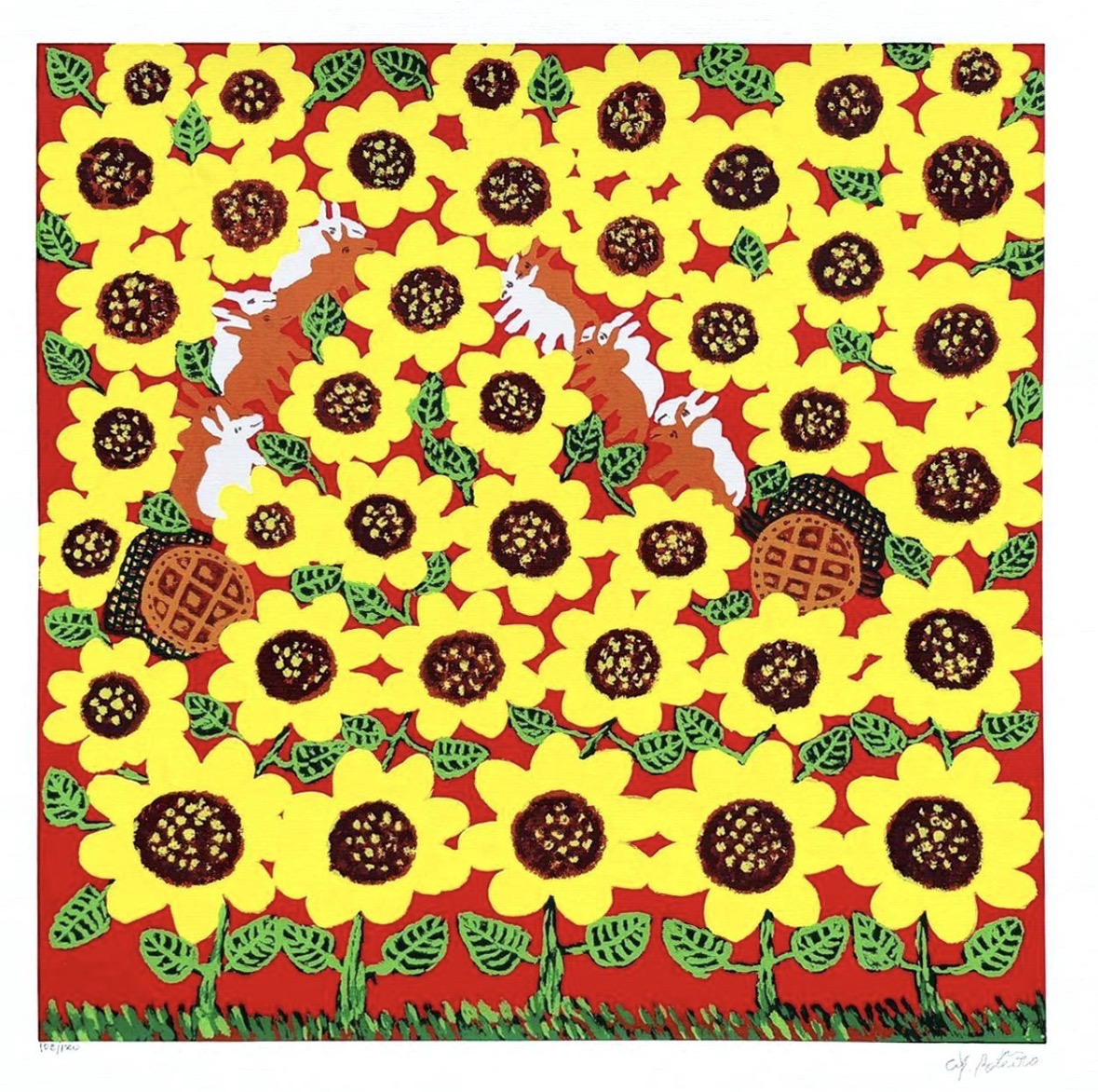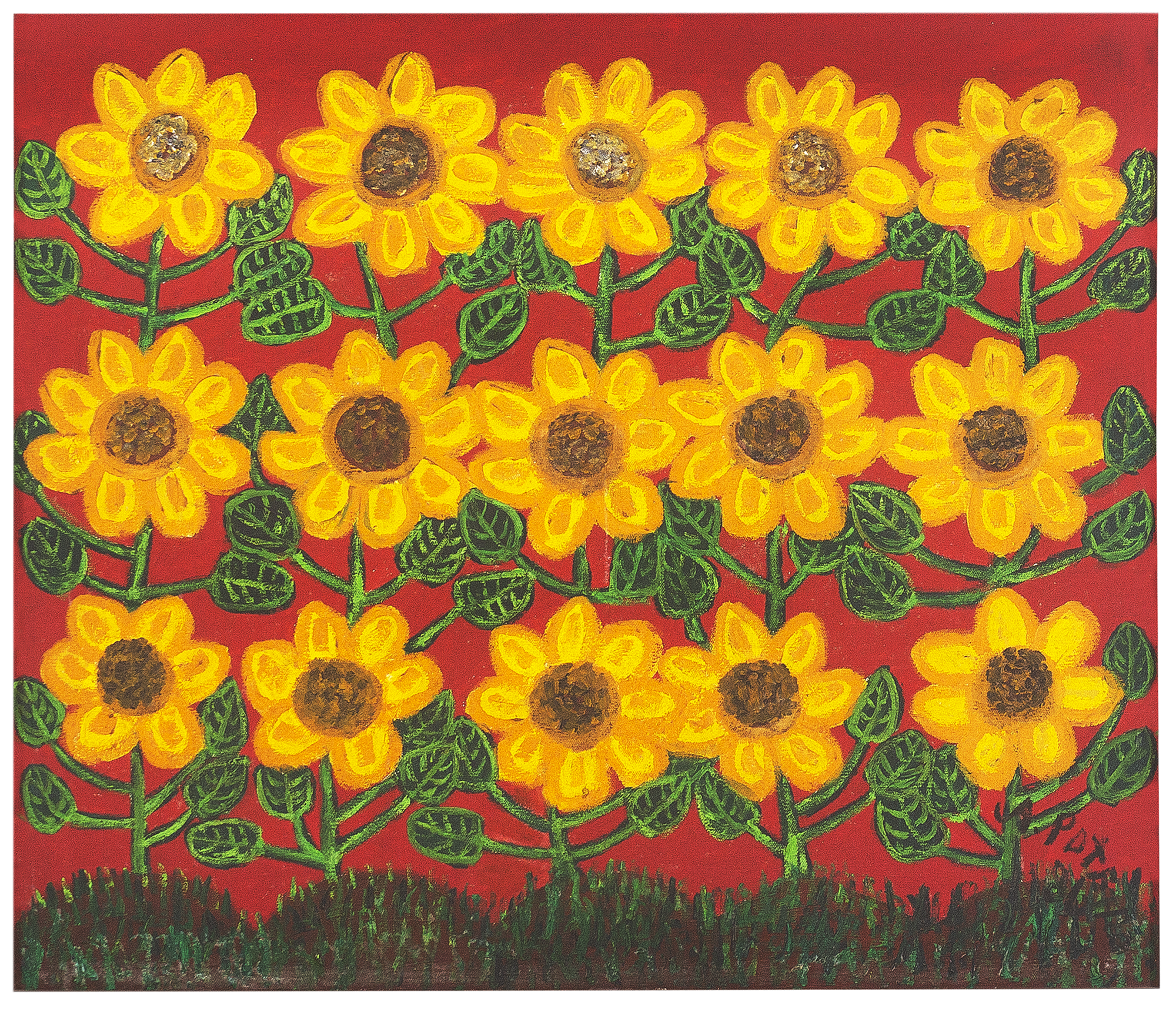 Antônio Poteiro - Pássaros e Girassóis - 60 x 70 cm - Óleo Sobre Tela - Ass. Canto Inferior Direito e Dat. 2007 - Esta obra está reproduzida no catálogo da exposição retrospectiva realizada pelo artista em Belo Horizonte em 2017 - Acompanha documento de autenticidade emitido pelo Instituto Antônio Poteiro