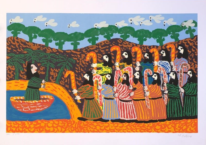 POTEIRO - Serigrafia | Título: Girassóis com Carro de Boi | Assinada: CID | edição: 103 /120 | Medidas: 70 x 70 cm