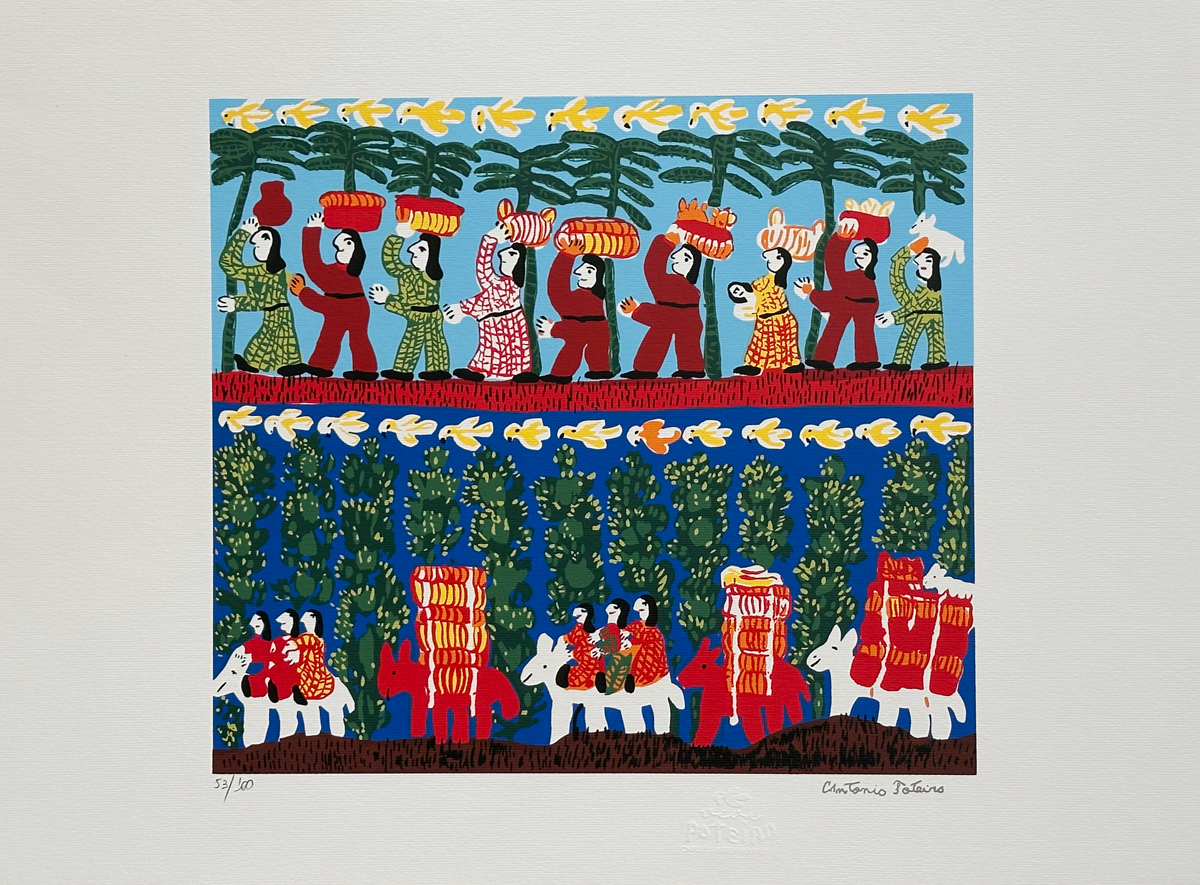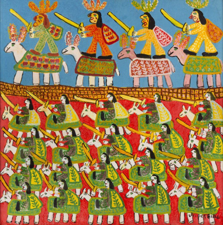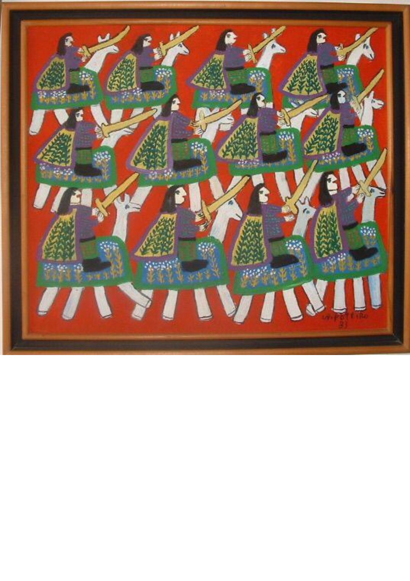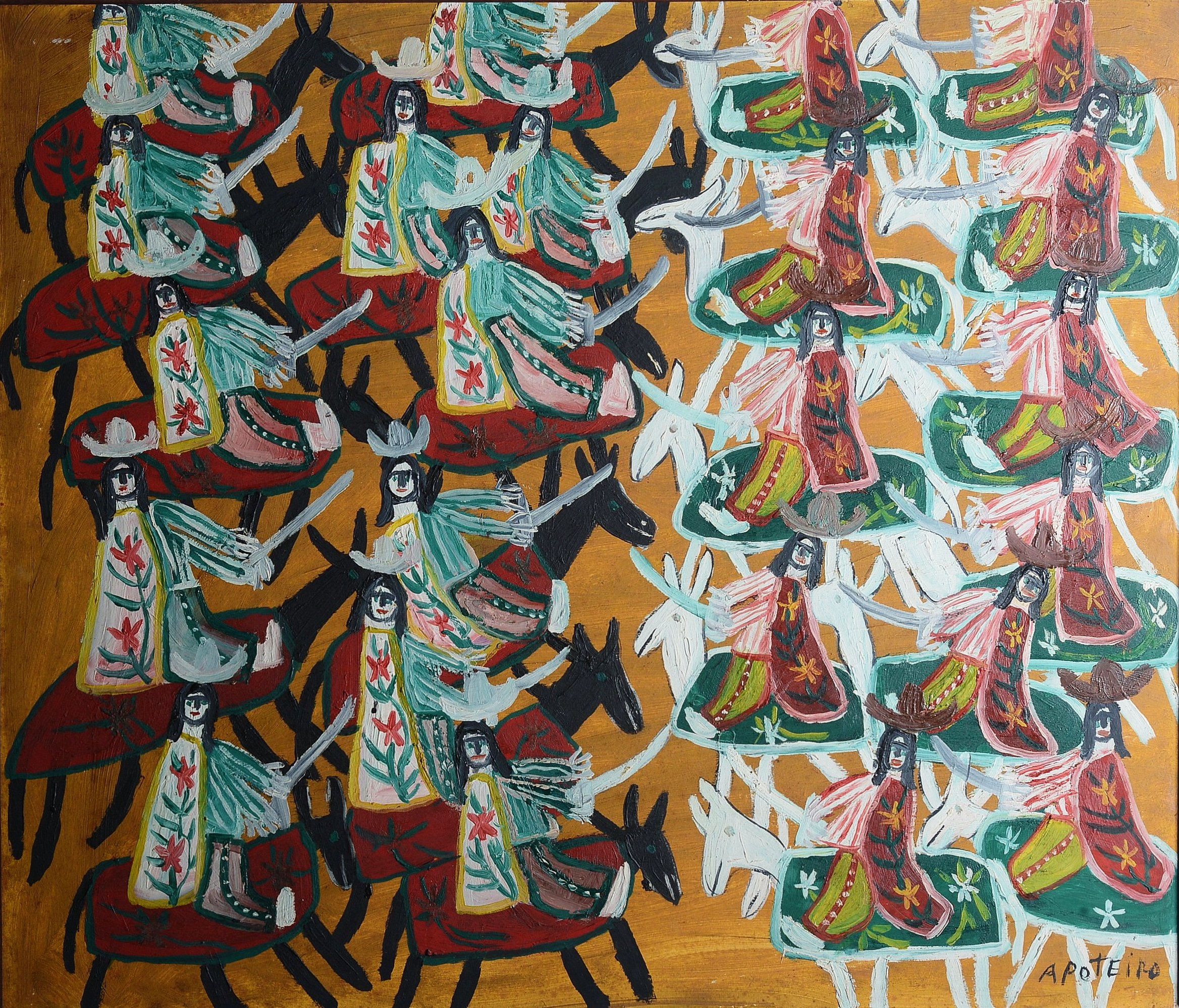 Antônio Poteiro - Cavalhada - 90 x 100 cm - Óleo sobre tela - Assinatura canto inferior direito e Data 2009 - Série especial 83 anos do artista