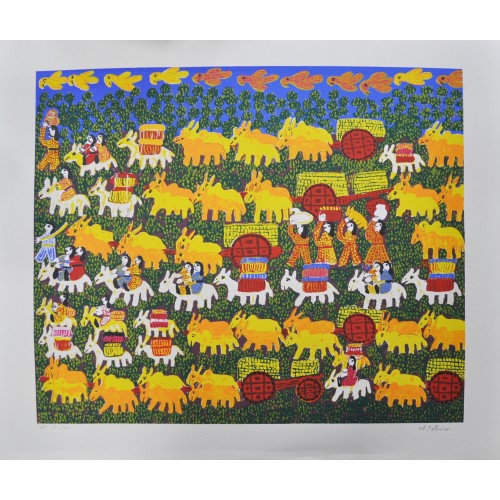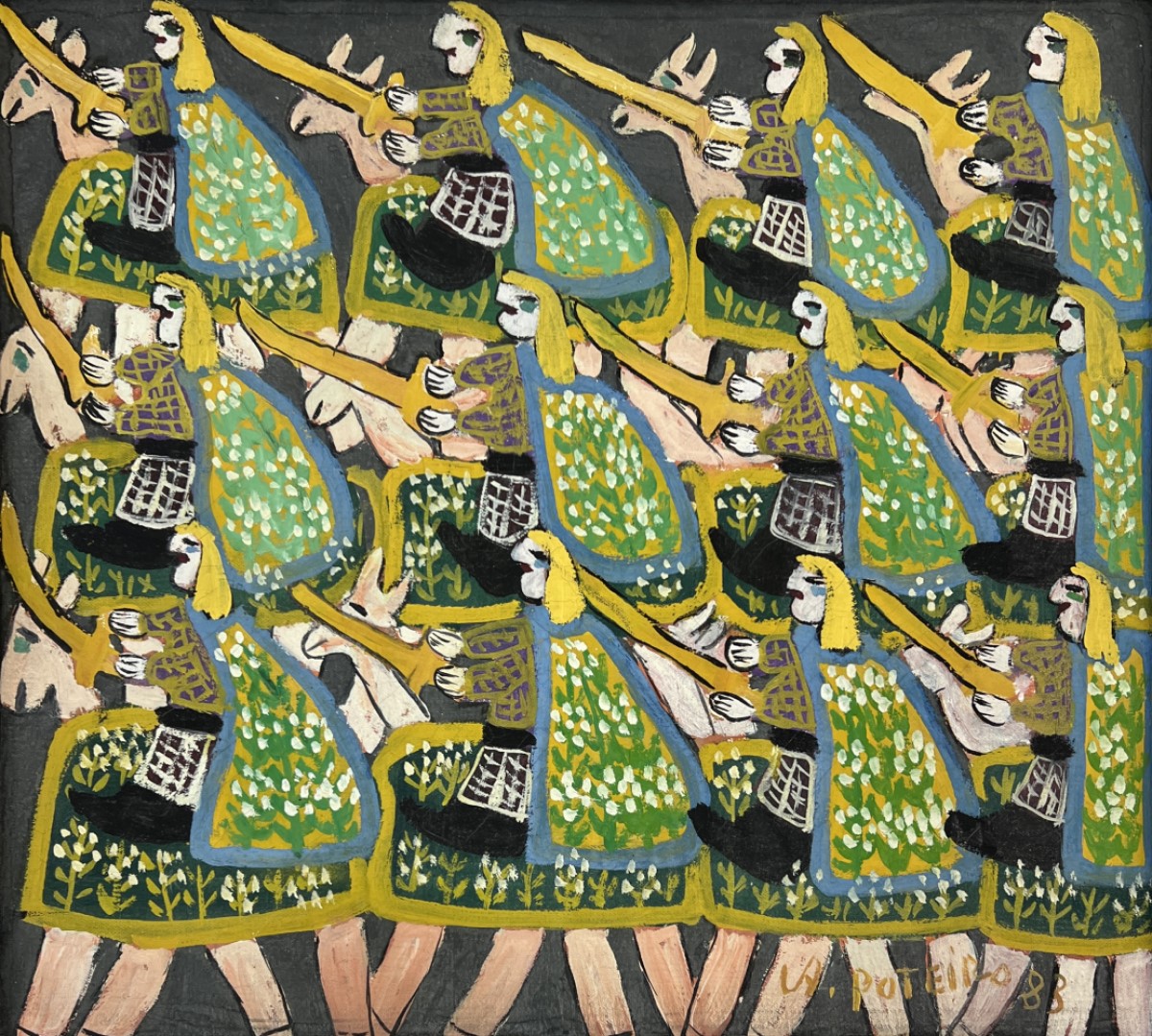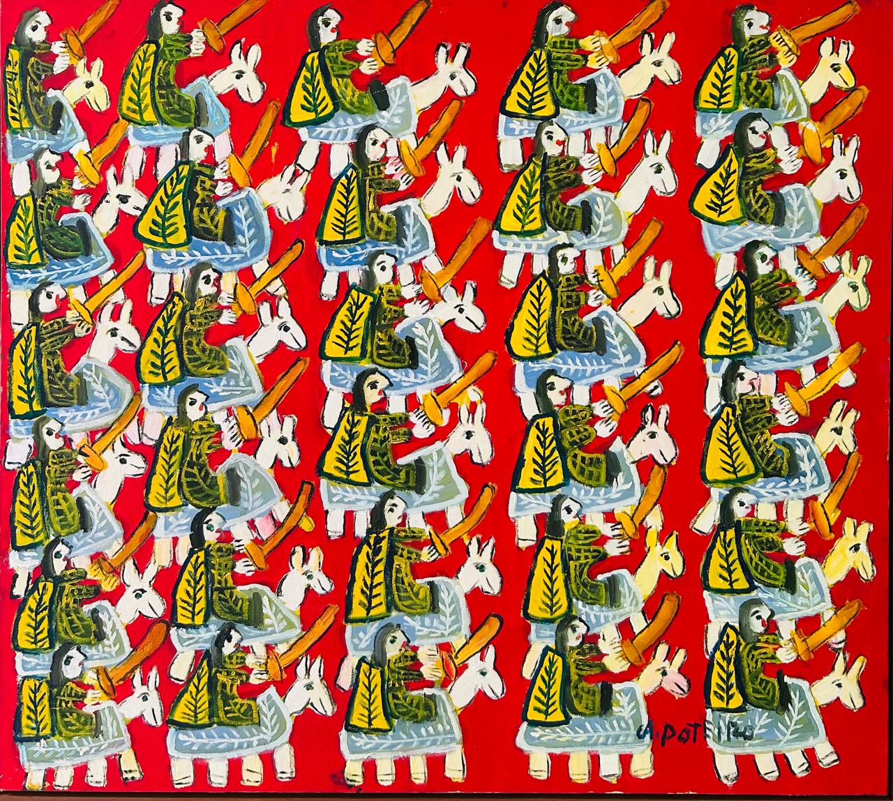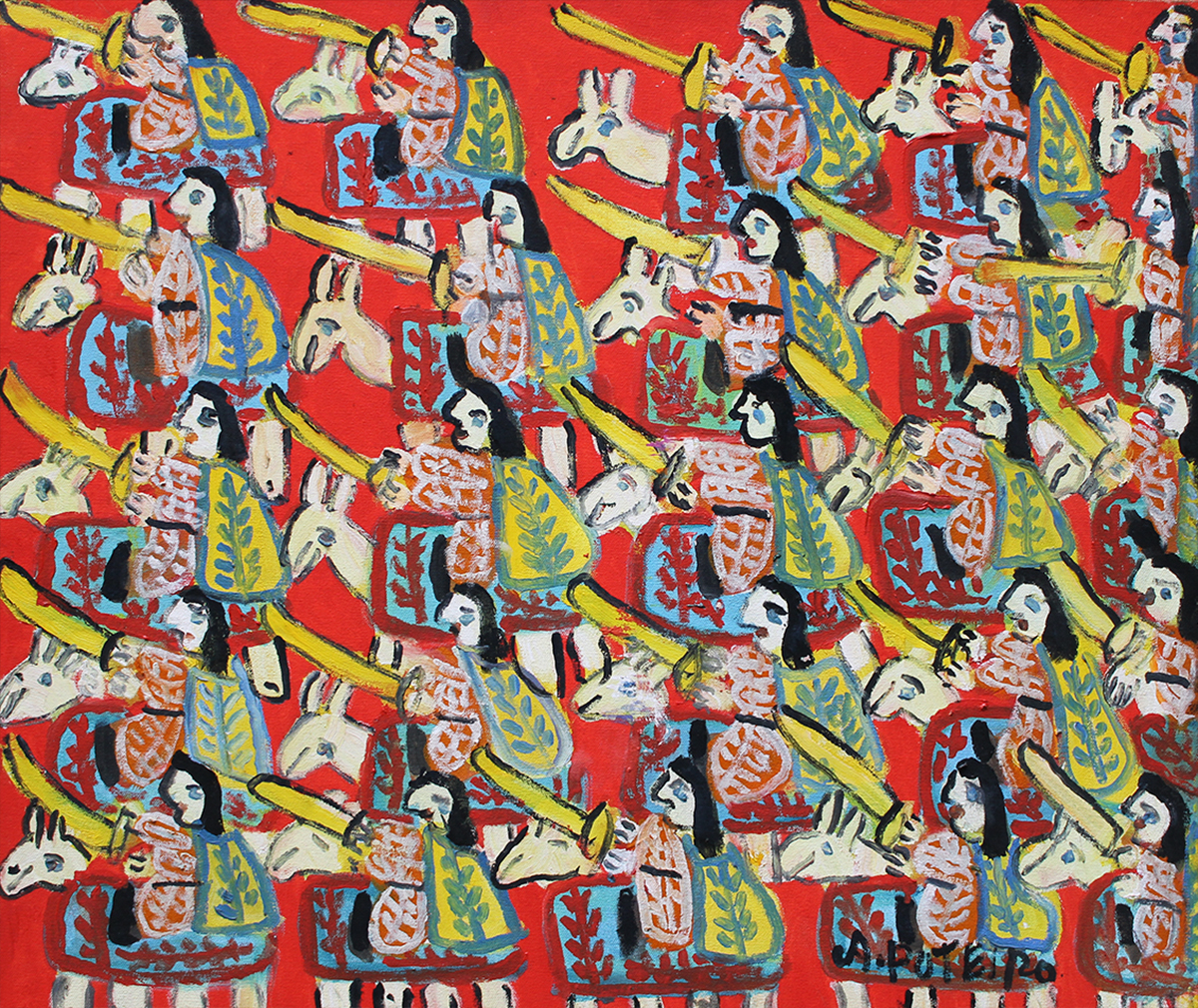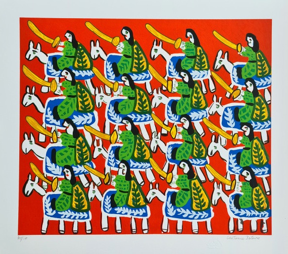 Antônio Poteiro - Cavalhada - 90 x 100 cm - Óleo sobre tela - Assinatura canto inferior direito e Data 2009 - Série especial 83 anos do artista