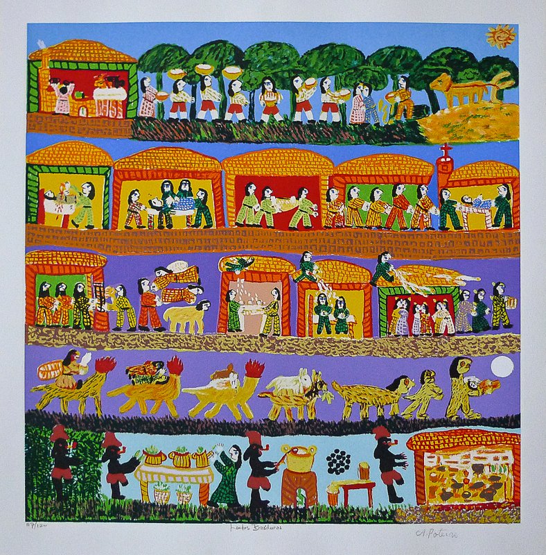 Antônio Poteiro - As vendedoras de frutas - 25 x 30 cm - Óleo sobre tela - Assinatura canto inferior direito e Data 2008