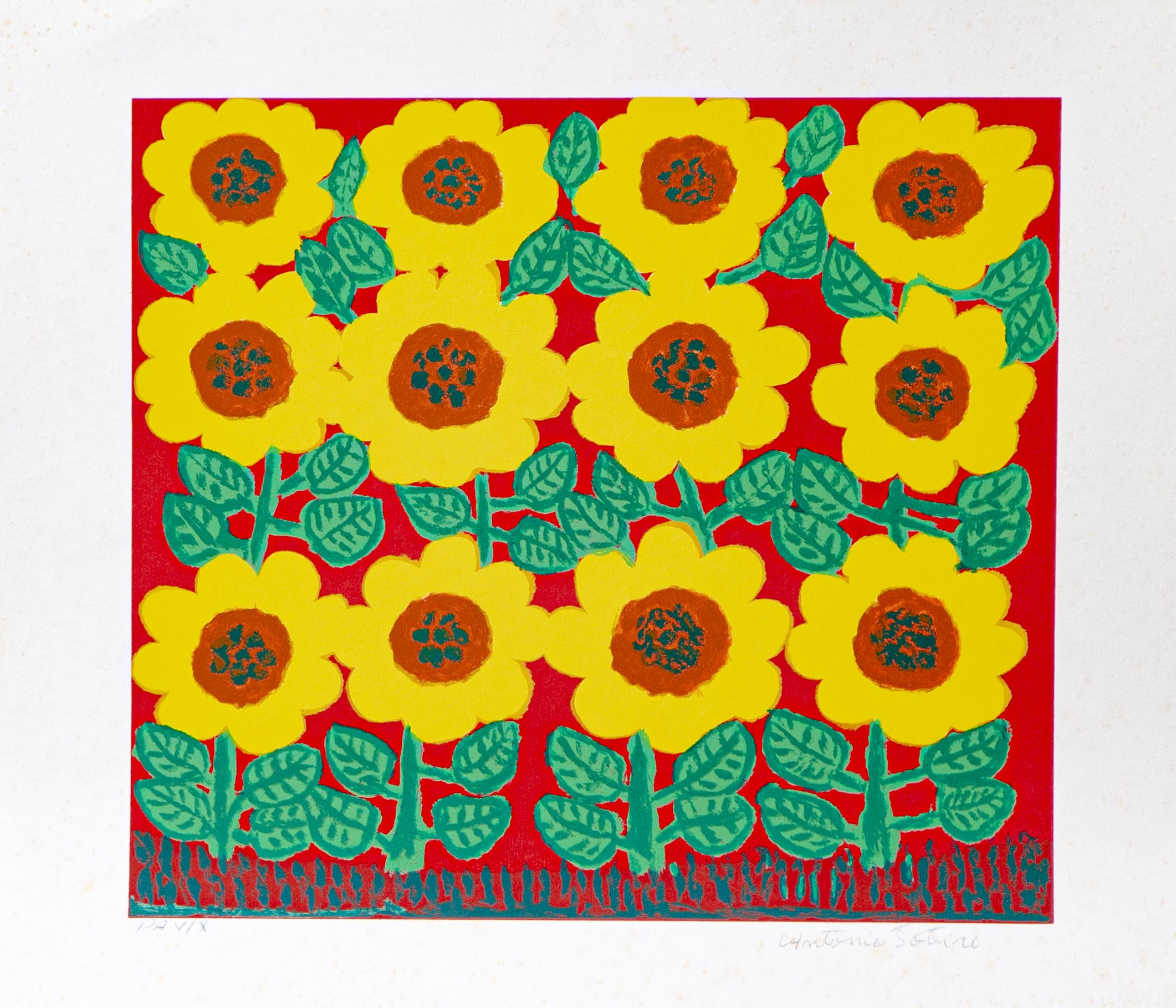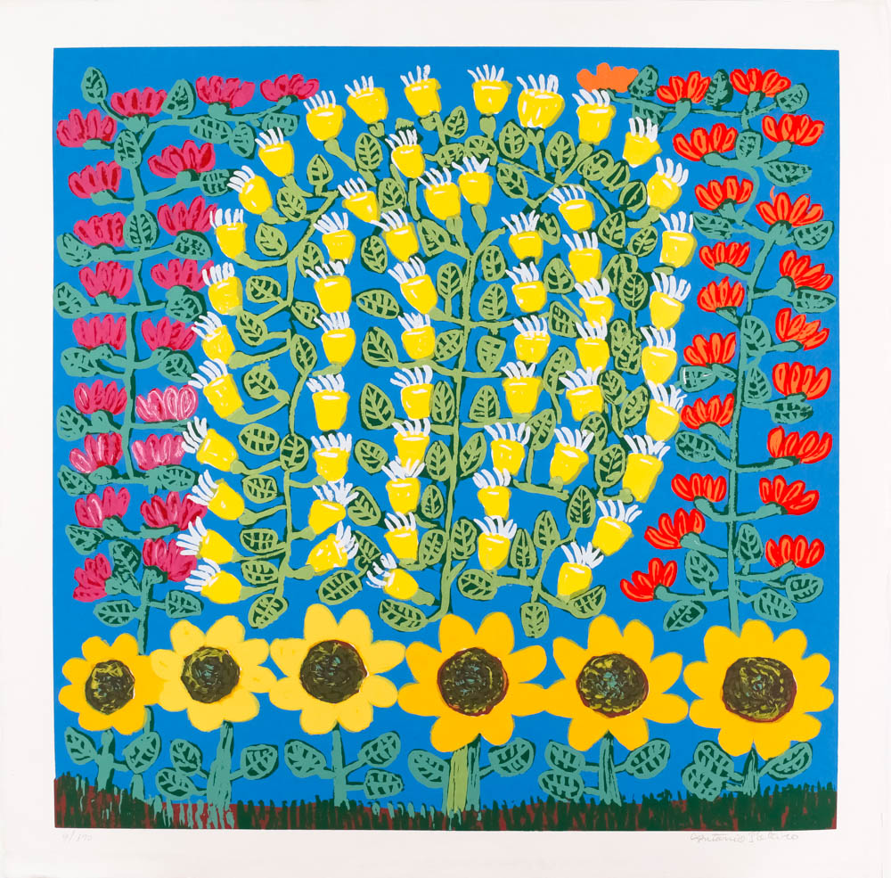 POTEIRO  -  Serigrafia | Título: Girassóis com Carro de Boi | Assinada: CID | edição: 103 /120 | Medidas: 70 x 70 cm