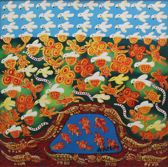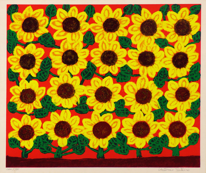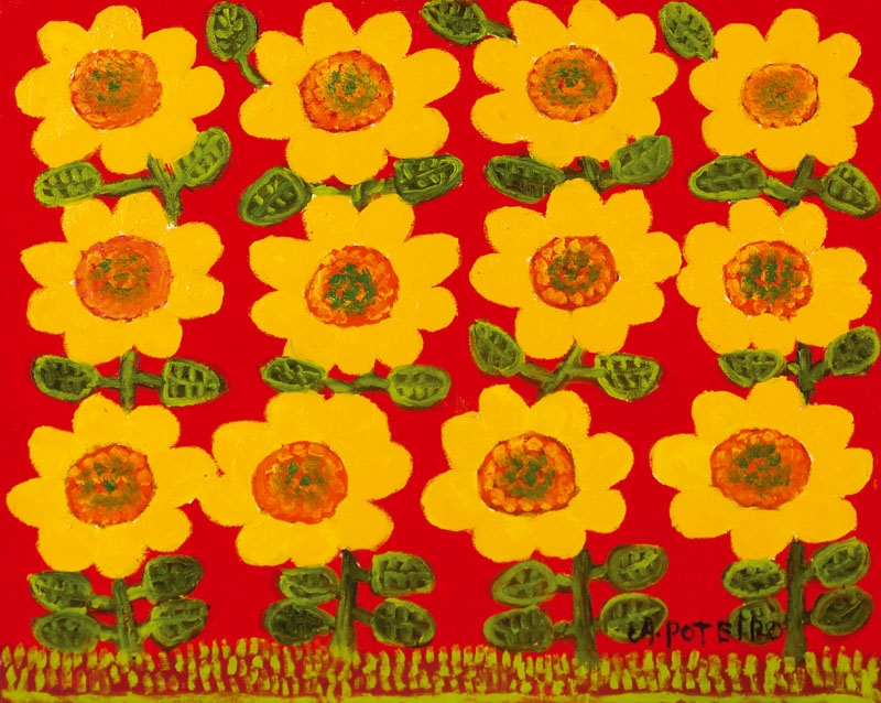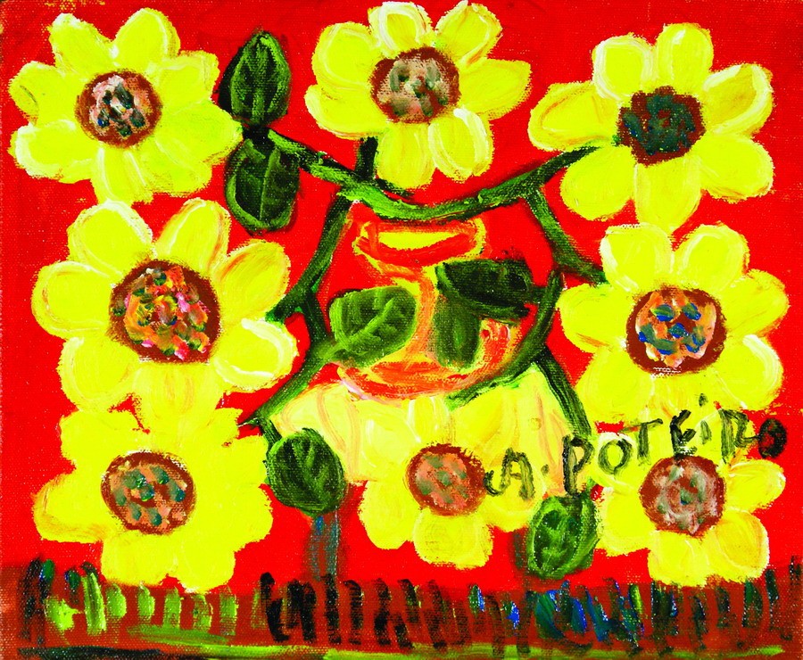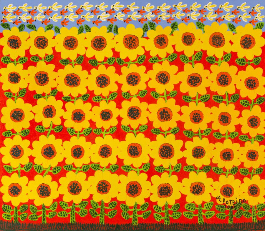 Antônio Poteiro - Girassol - 1997 - Óleo sobre tela - Assinado canto inferior direito - 180 x 170 cm. Reproduzido no catálogo “O universo mágico de Antônio Poteiro”, exposição realizada na Legião da Boa Vontade, Brasília, 1997, pág. 7.