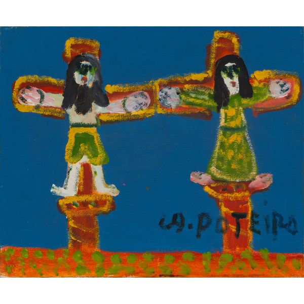 Antônio Poteiro - A crucificação de Cristo e o ladrão - 25 x 30 cm - Óleo sobre tela - Assinatura canto inferior direito e Data 2000